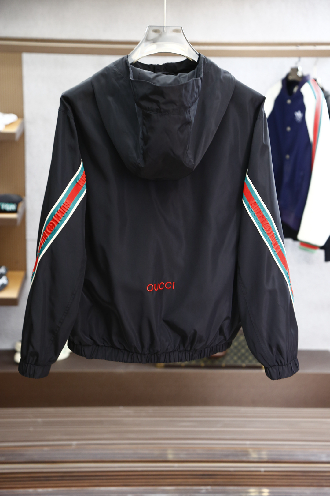 ?? Gucci Men's Spring/Summer 2025 new fashion casual hooded jacket, windbreaker, a coat full of high-end feel, with a rubber Logo on the chest and a hat at the collar. Choose from different styles as you like. It features brand-molded custom metal zipper pulls, bidirectional zipper opening and closing, side zipper pockets, and elastic cuffs. Both the outer and inner layers are made of nylon fabric, offering a full range of products. Black and green, M ~ XXXL