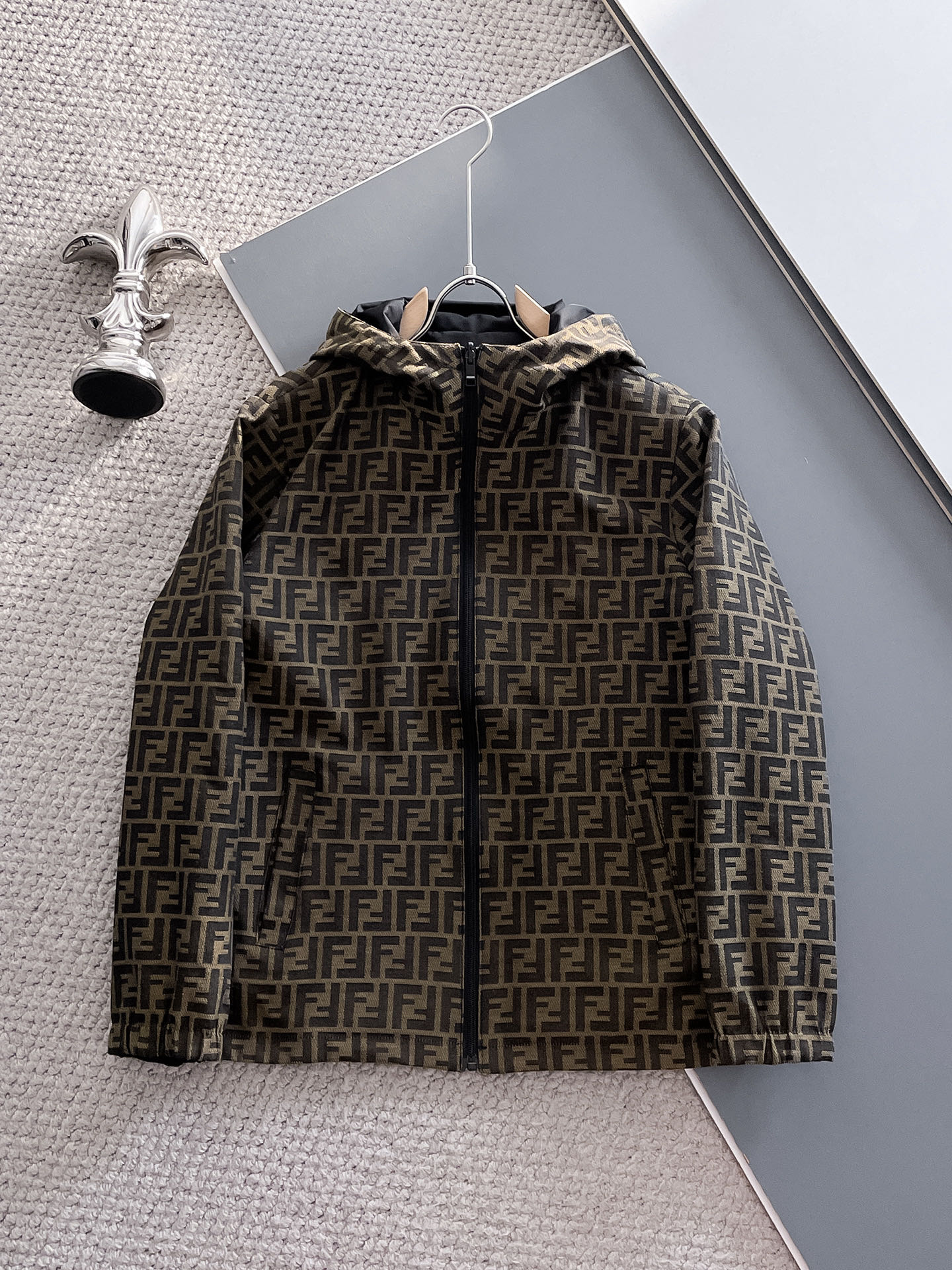 Fendi's new Spring 2025 casual jacket, the latest fashionable casual jacket, fashionable casual jacket! Made of professionally customized technological fabric, the surface is clean, smooth and lustrous. The texture is obvious even through the screen. It is comfortable, light and not stuffy when worn, providing you with the most enjoyable wearing experience! Exquisite Logo accessories! It perfectly enhances the overall sense of luxury and grade, and the high-end luxurious atmosphere can be immediately perceived! This basic and regular hooded jacket has a simple and versatile cut that is not picky about the wearer. It can easily handle various occasions and environments and is undoubtedly an essential item for daily commuting! Size: M-3XL. Please report your height and weight when placing an order!