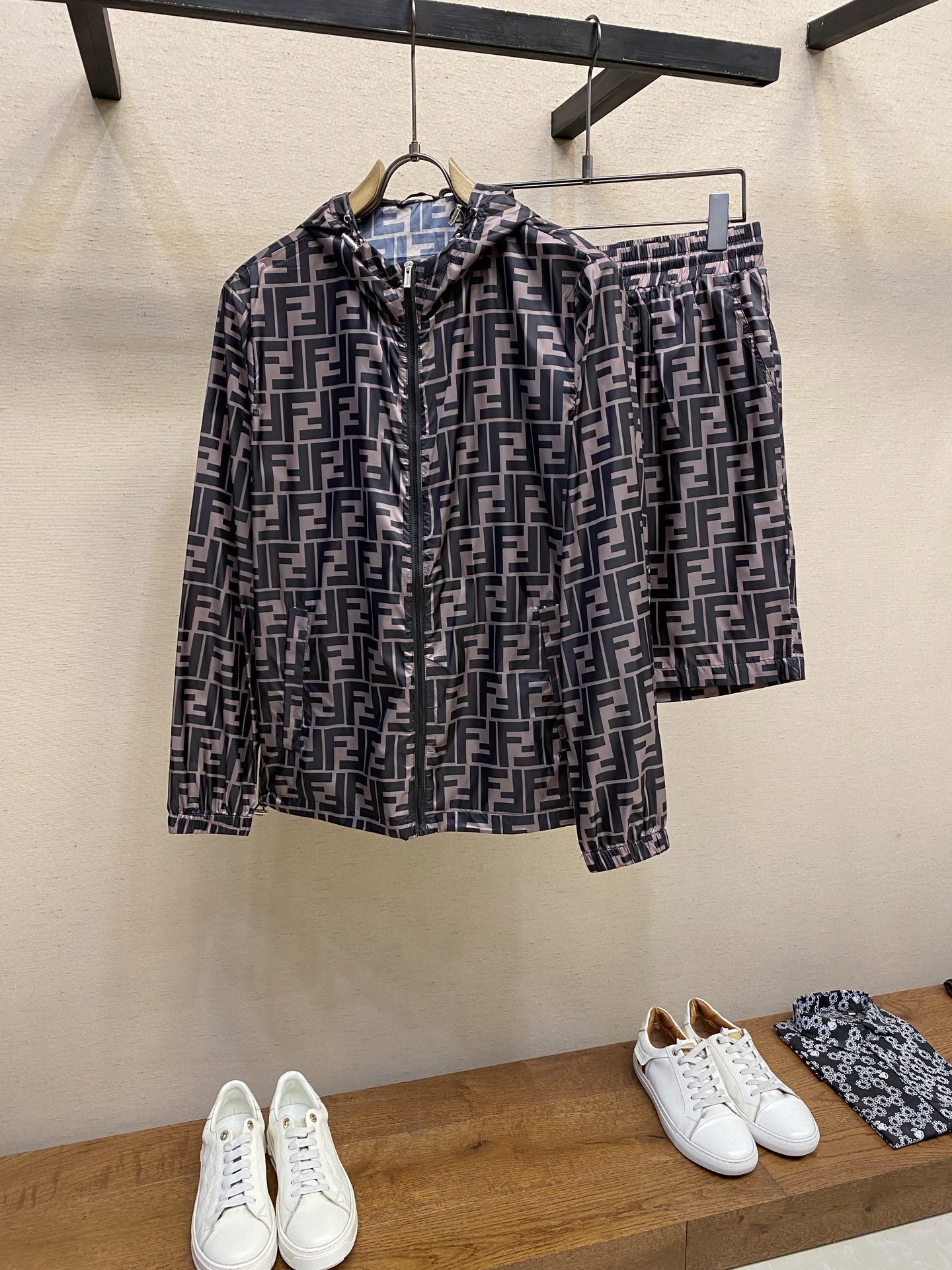 ????Fendi (sold as a set, not split) highly recommended! Spring and summer new full-body printed hooded long-sleeved sun-protective clothing ? shorts set, full of style, looks great when worn, super stylish, definitely a must-have to attract attention! Fashionable and trendy suits. Made of imported fabric, it offers good comfort and exquisite sewing! A casual and cool European and American style! With a smooth and neat upper body, it is crisp and well-shaped, fashionable and handsome, presenting a perfect image of a stylish man Size: M-3xl