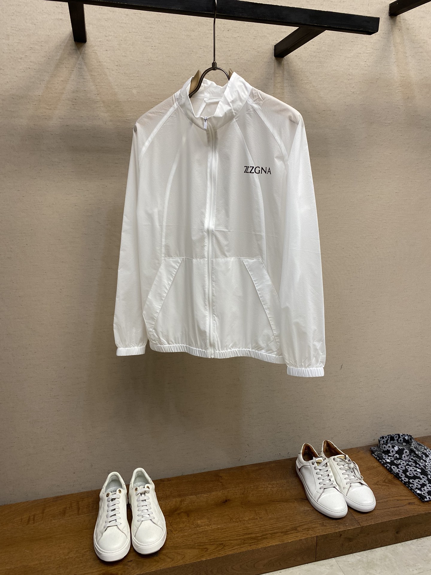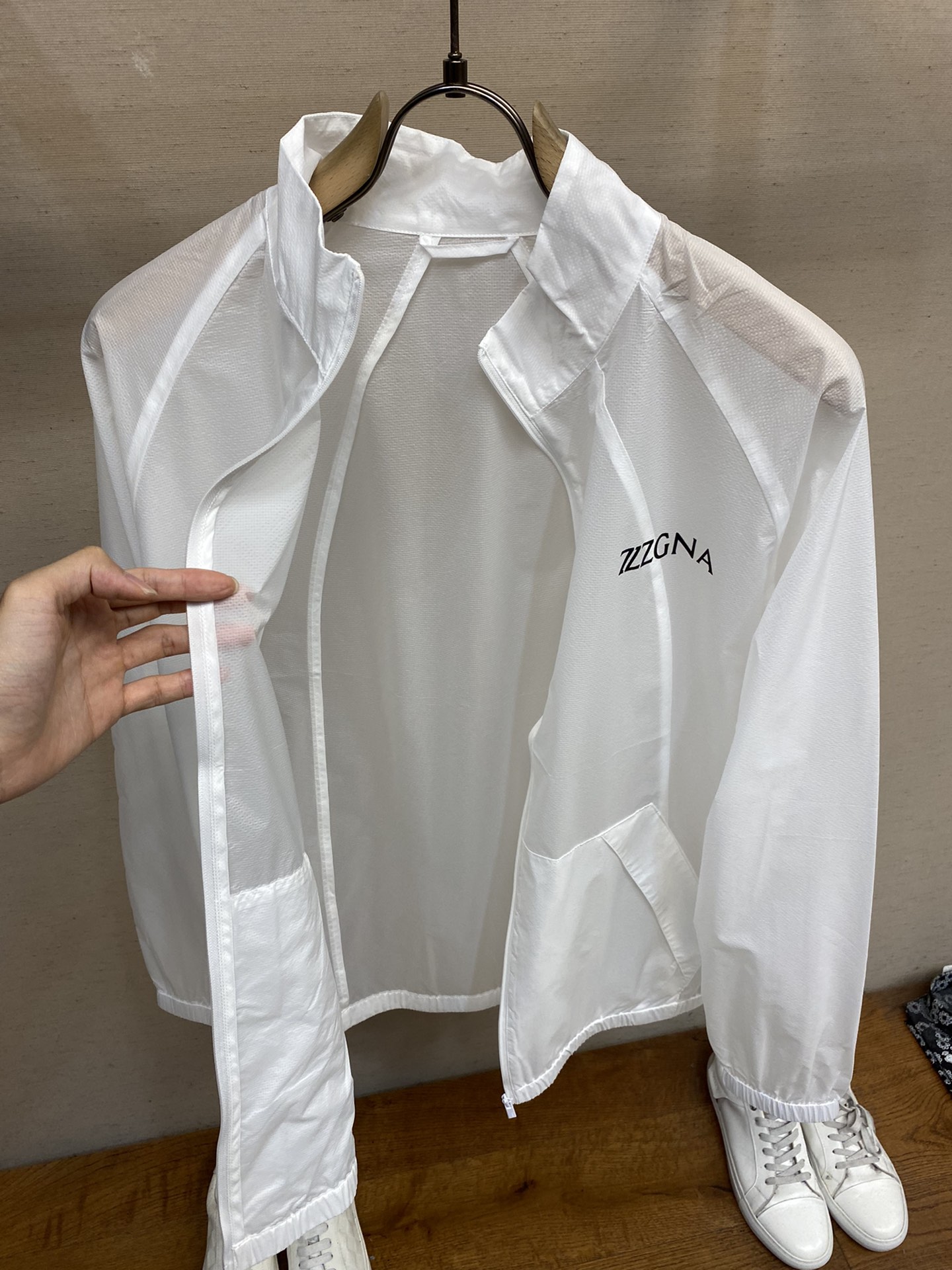 ????Zzegna, 25 new styles of fashionable thin jacket sun protection clothing, order through overseas trading company channels, direct shipment from warehouse in Hong Kong, China, limited edition of fine products. This spring and summer new lightweight sun-protective jacket is a super clean and fresh white jacket. The fabric is made of 100% nylon, a very lightweight sun-protective material. The style design with a hood and zipper is very suitable for a jacket in spring. The design of the garment is clean and simple, embellished with the brand's signature label as decoration while highlighting the brand's own charm Size: M-3xl Color: White, black, caramel