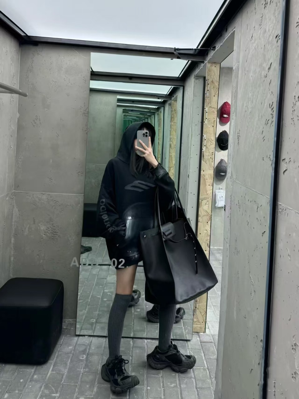 The effect of the model wearing it Hand-painted hooded sweatshirts with the large "M" logo on the front and back of Balenciaga