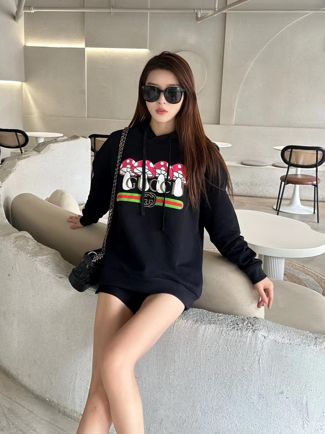 The effect of the model wearing it Gucci/
