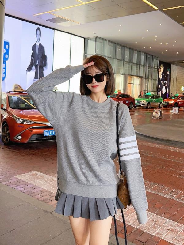 The effect of the model wearing it THOM BROWNE TB's new Waffle round-neck puller hoodie