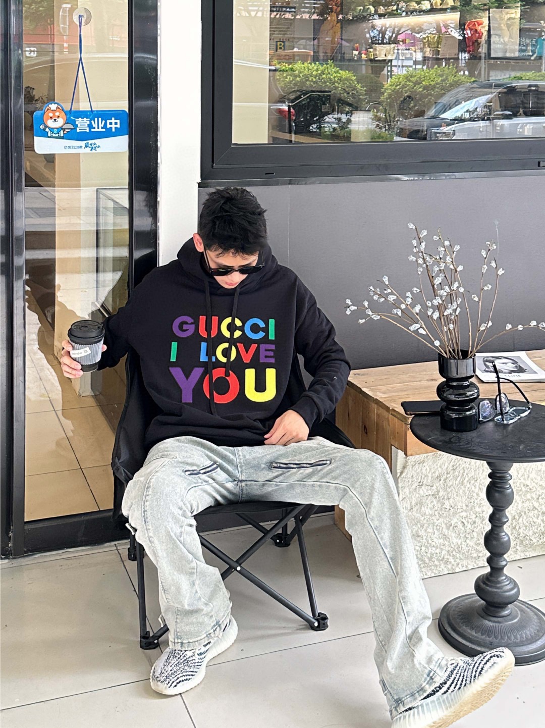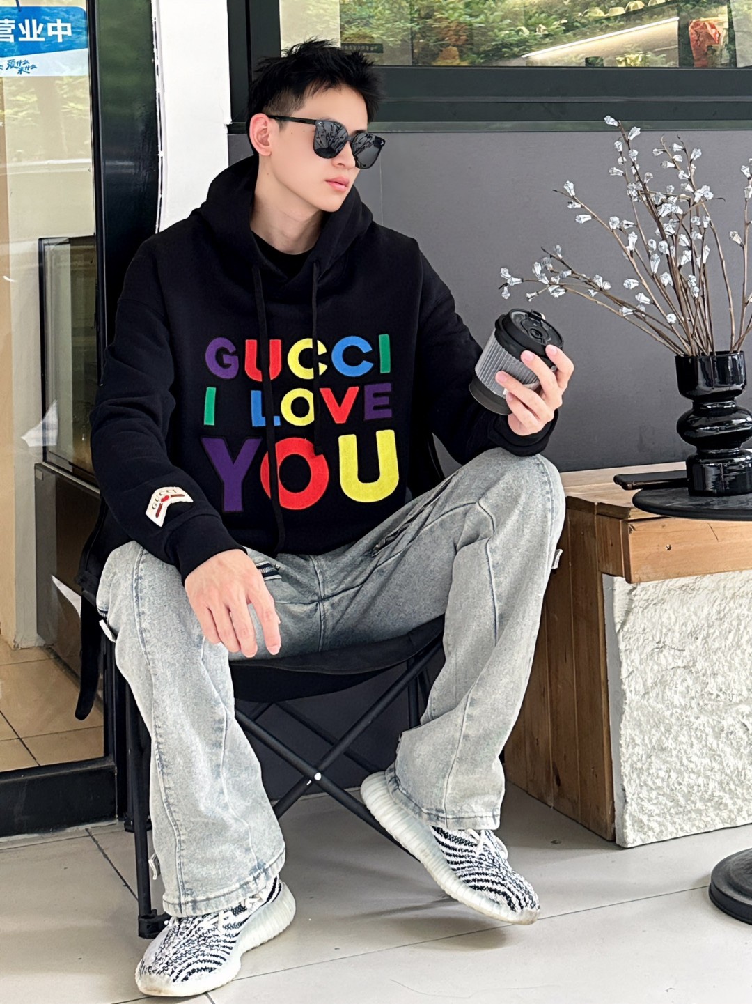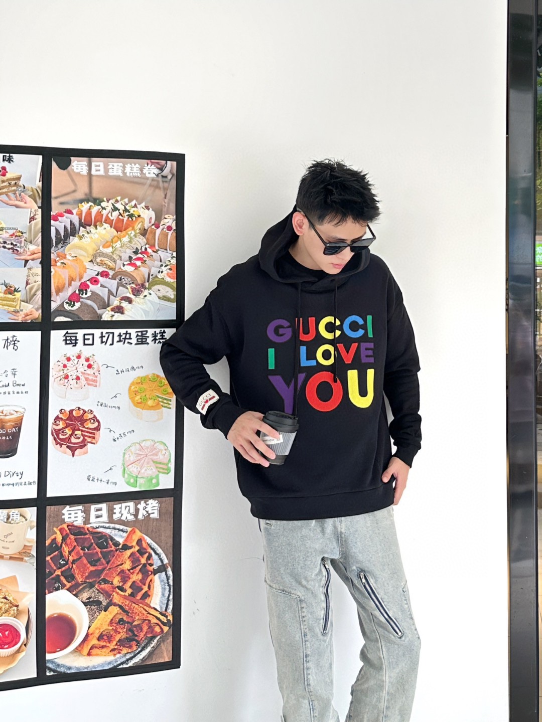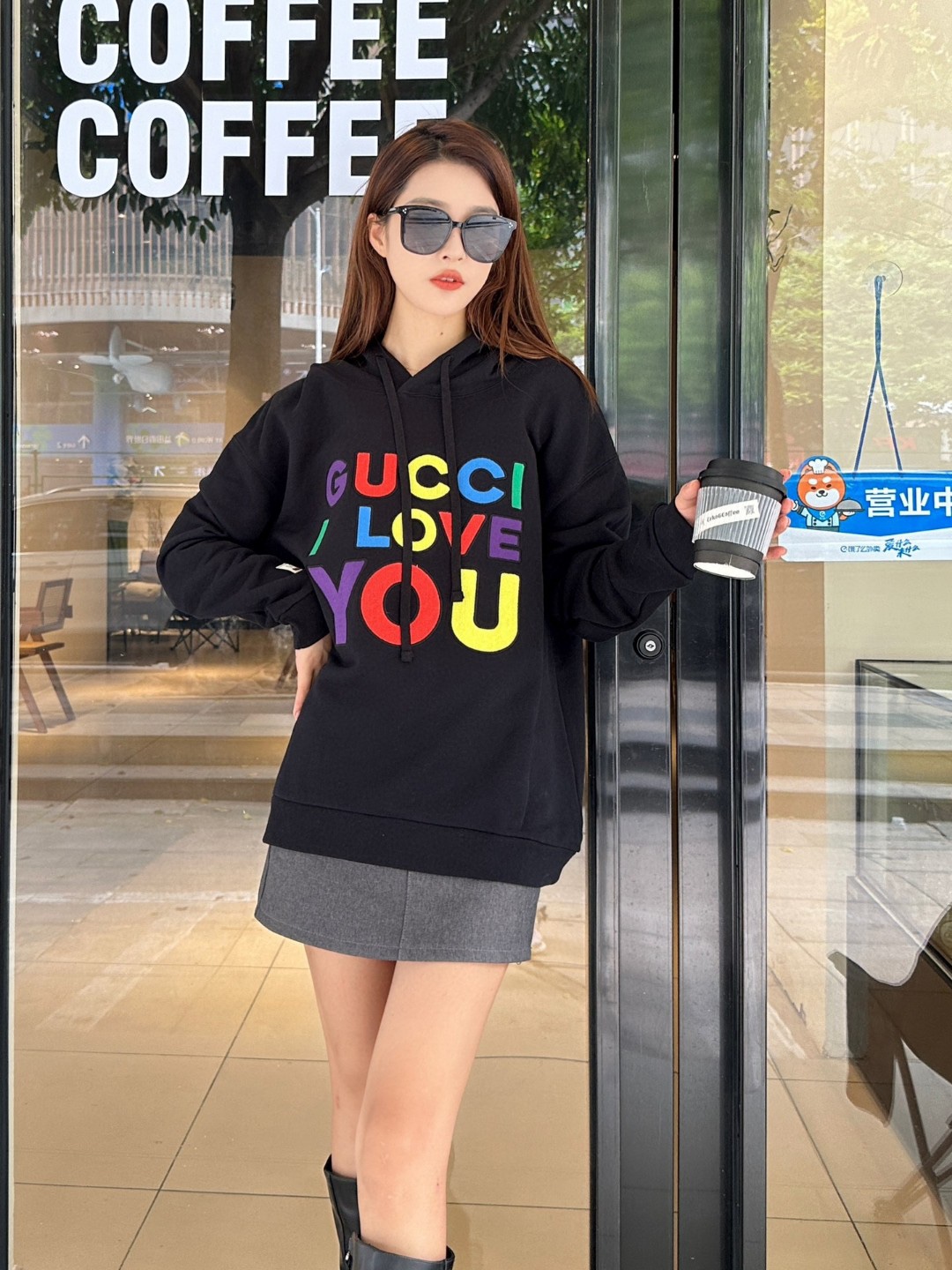 Gucci/ Gucci Heavy Industries full-color logo letter embroidery hooded sweatshirt wearing effect #