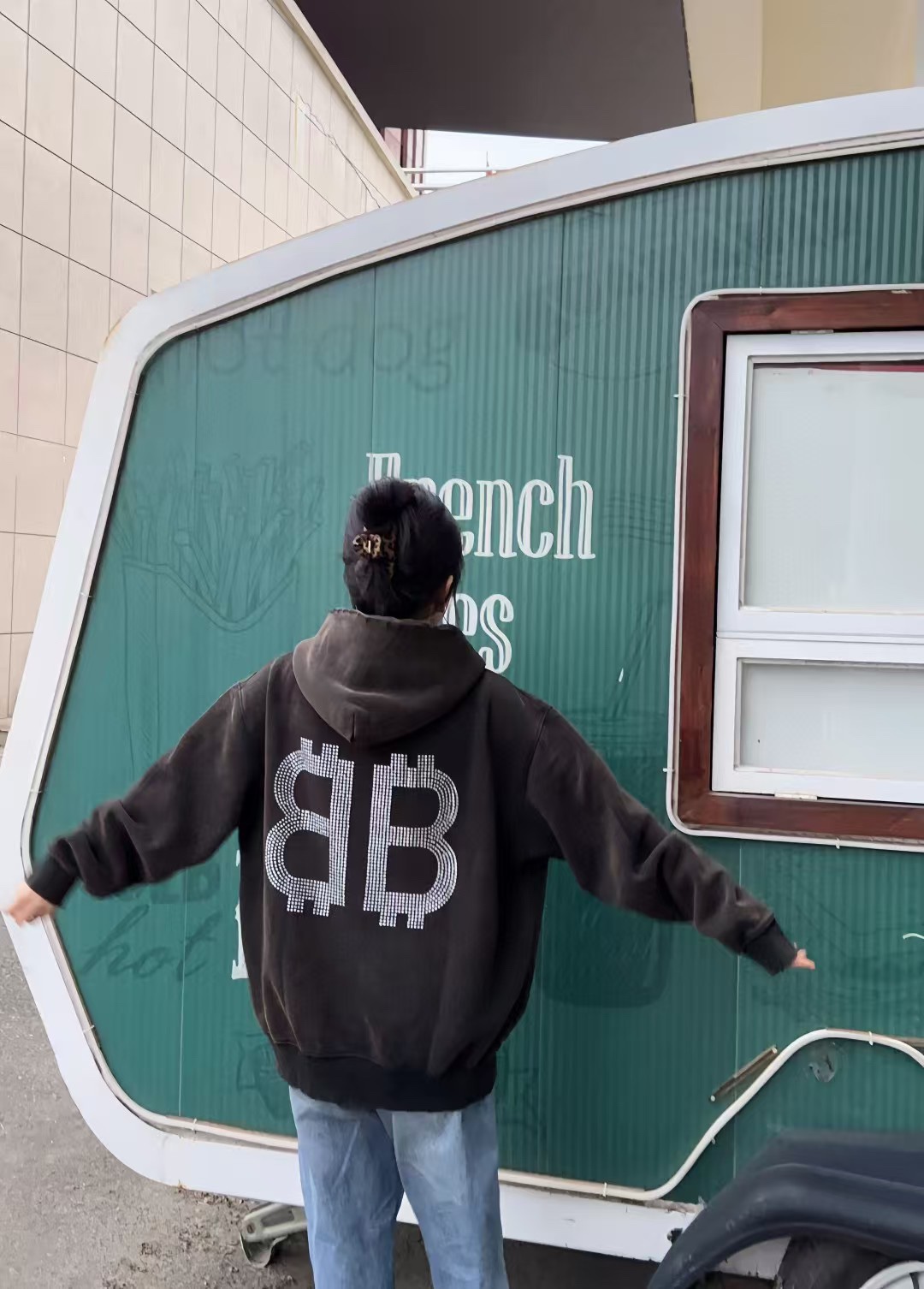 Balenciaga/ Balenciaga 24Fw Double B Bitcoin diamond ironing and Fleece hooded sweatshirt wearing effect #