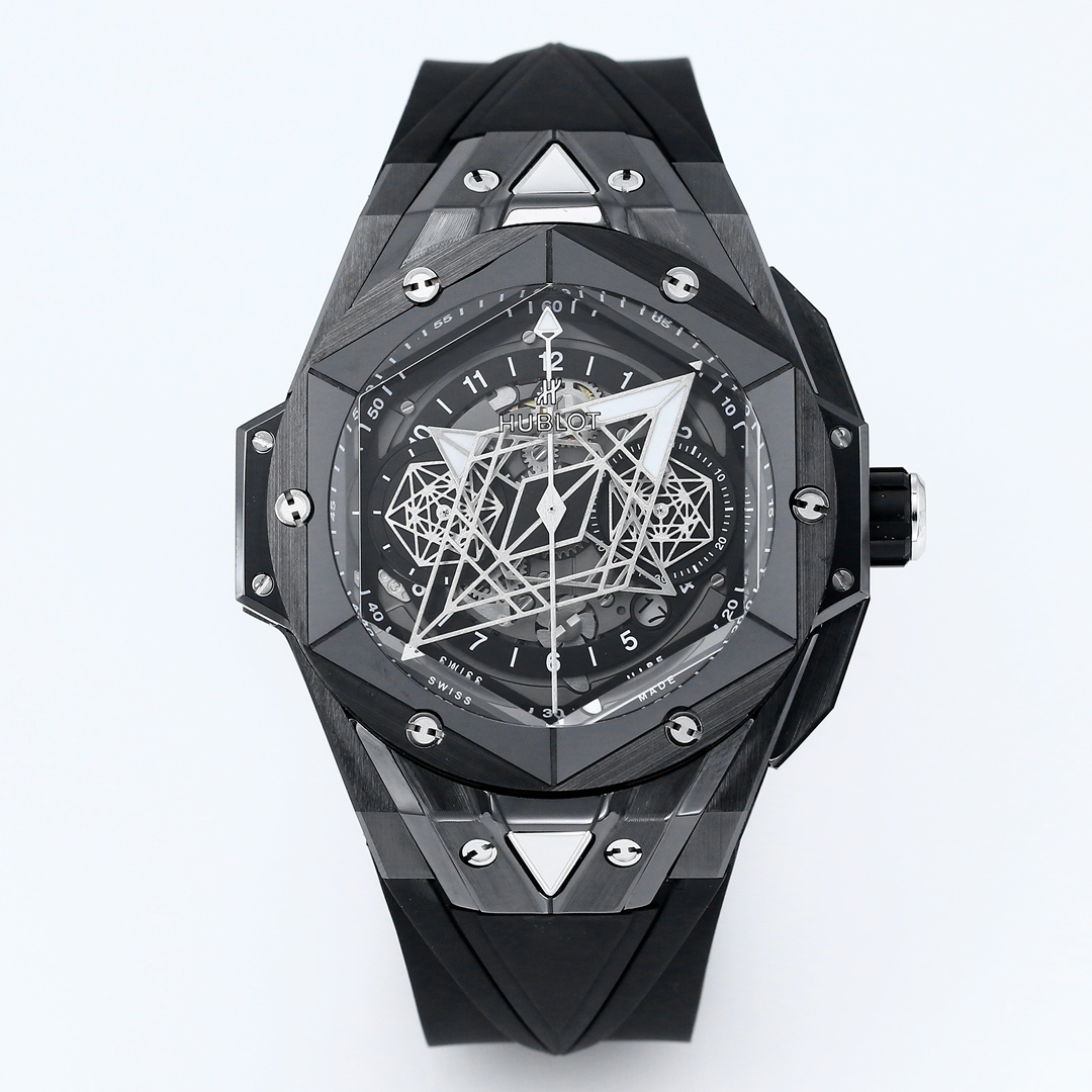 ?? HUBLOT ??HB3 Big Bang Sang Bleu II tattooed second generation watch. By using three-dimensional geometric figures and ingenious conception, it presents exquisite relief effects and a perfect three-dimensional visual experience. The ceramic case adopts a unique high-temperature and high-pressure forging method to form ultra-high-density colored ceramics. After being carefully selected from a hundred, it is ensured that each finished product has no color difference from the original, achieving true consistency with the original! After polishing, satin finishing, slicing, engraving, chamfering and face-cutting, it presents an alternating and superimposed hexagonal spatial visual, perfectly interpreting the brand's ambition and design concept! ?? The most eye-catching diamond-shaped hour and minute hands and the two hexagonal sub-dials on the left and right show a different geometric pattern visual effect as time goes by. The overall geometric patterns on the dial have been polished to a CNC-level level to give a sharp visual effect, with no burrs at all from any Angle, every detail in one go. The imported fluororubber watch strap, paired with Hublot's easy-to-use folding clasp, makes the wearer more comfortable. The movement adopts the 7750 modified HUB1240 movement. Even if the case back is transparent, it can still be flawless. After precise polishing, the stability of the 7750 base movement has been greatly enhanced, alleviating the long-standing awkward situation where chronograph movement models only have their own watches! Be flawless! OL has been meticulously crafted over a period of two years. Welcome all watch enthusiasts to appreciate it! Blue and grey CERAMIC models are being updated successively ??S1 exquisite recommendation men multi-functional mechanical watch