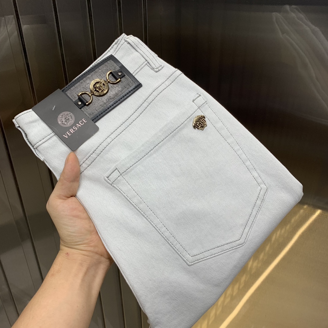 The fabric of Versace's new men's jeans in 2025 is highly elastic. Exclusive sale on the official website, with fashionable, elegant and heavily crafted design. This product is made with the original color yeast washing process, carefully selected imported heavy denim fabric, and decorated with counter hardware. It is a genuine leather brand with exquisite stitching and a high-end style, making it worth having. Size: 28-38, shipped the next day
