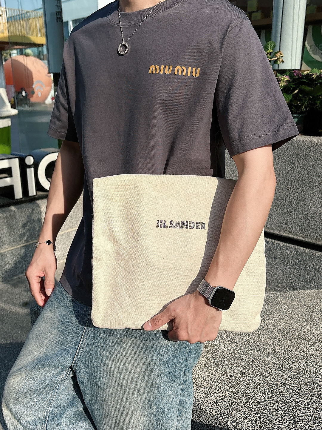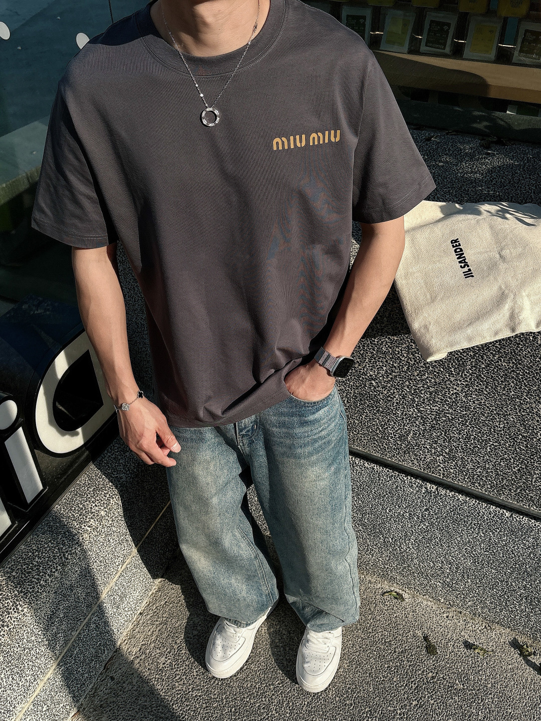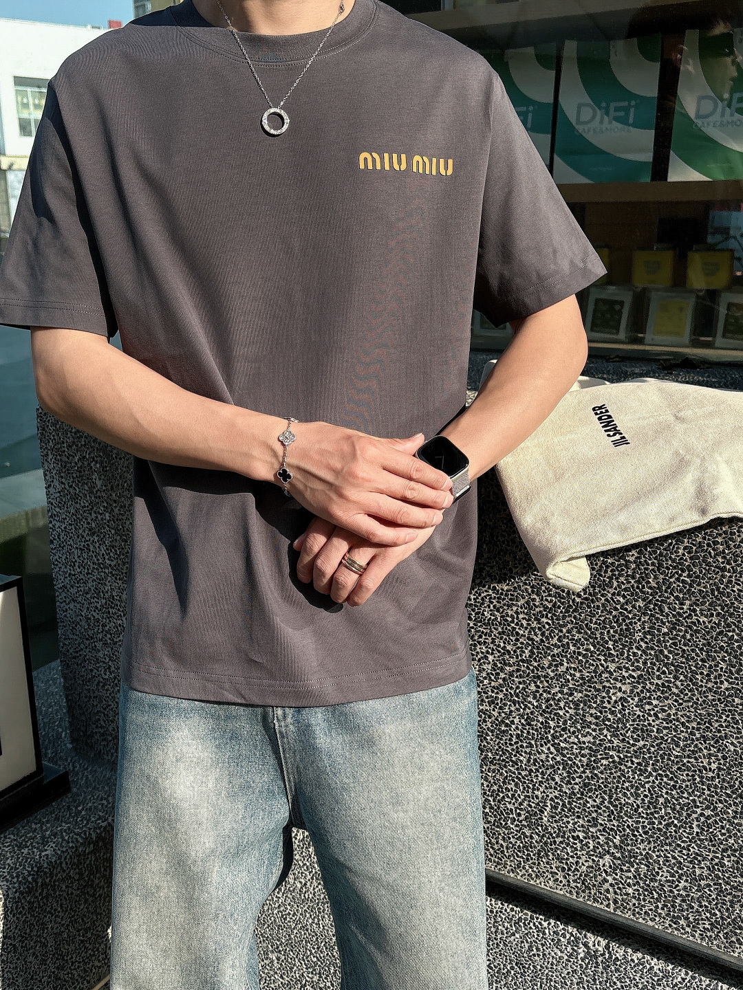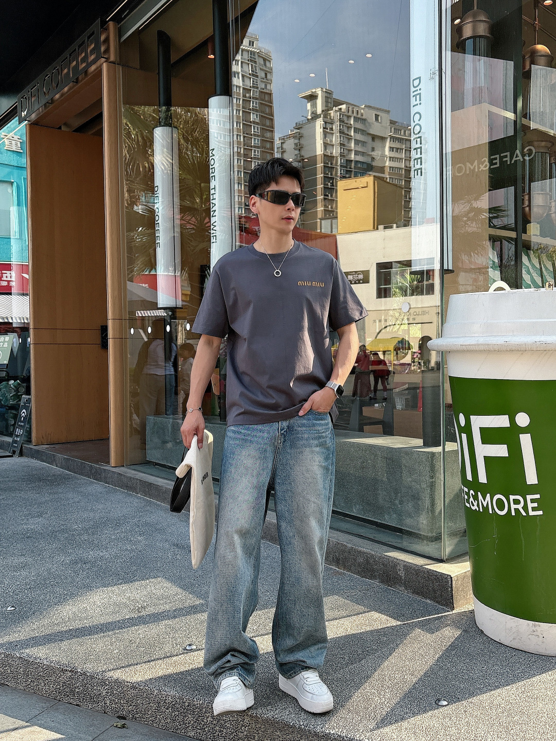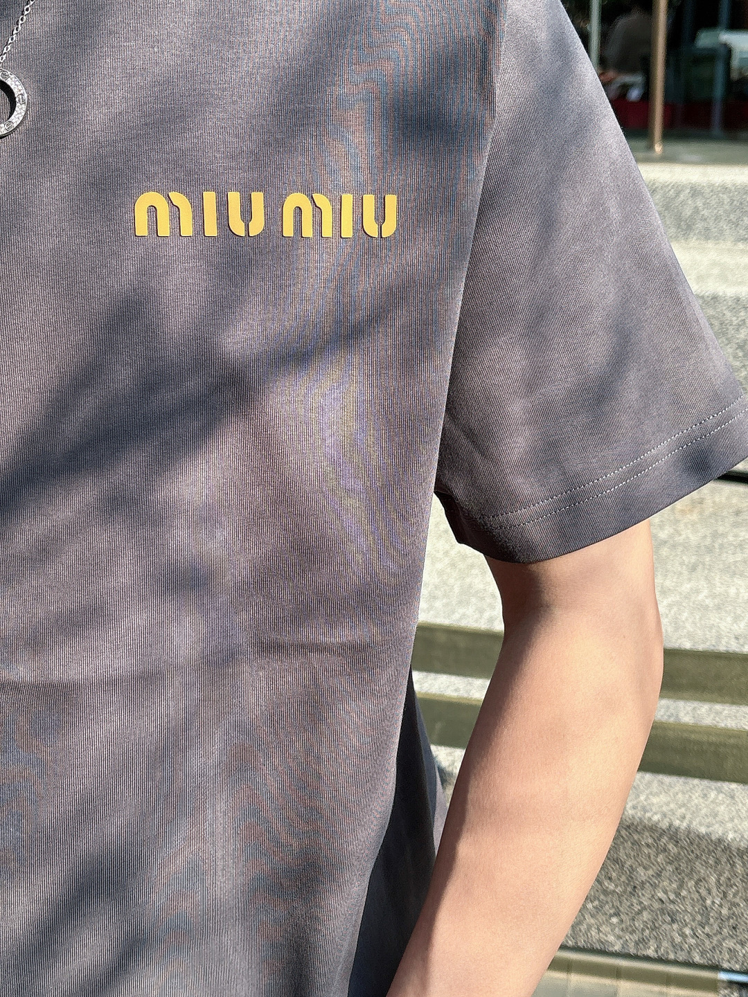 MIU25SS Spring/Summer new plain knitted cotton basic round-neck short T-shirt, men's and women's same three-dimensional letter logo offset printed casual straight short-sleeved T-shirt! Trading company channels are rarely available, leading the official website for sale! The new MIU T-shirts, from the selection of fabric to the design details, all reveal the brand's ultimate pursuit of quality and unique insights into fashion! This short T-shirt is made of custom-made plain knitted fabric provided by customers. It not only feels soft and comfortable to the touch, but also has good breathability and moisture absorption. Even in the scorching summer, it can keep the skin dry and comfortable! The classic letter Logo on the chest adopts a three-dimensional hot-press offset printing process. This process not only makes the Logo look more three-dimensional and full, with a sense of layering, but also feels smoother to the touch, less likely to fall off or crack, ensuring that the T-shirt combines a sense of fashion and durability! The simple yet fashionable Logo design not only showcases the unique tone of the Miu brand but also subtly reveals the taste and style of the wearer! The basic straight-leg round-neck style is not only versatile and suitable for everyone, but also can be easily worn with jeans, casual pants or skirts, showcasing different style charms! Black/white/grey, all three colors in! Size: S-XXL Size S: Shoulder width 46cm- Chest circumference 102cm- garment length 66cm Size M: Shoulder width 49cm- Chest circumference 108cm- garment length 68cm Size L: Shoulder width 52cm- Chest circumference 114cm- garment length 70cm Size XL: Shoulder width 55cm- Chest circumference 119cm- garment length 72cm Size XXL: Shoulder width 57cm- Chest circumference 124cm- garment length 74cm Size recommendation (Standard style) : I'm 174 to 140 pounds tall. Size M is suitable for me to try on! For boys weighing under 130 pounds, choose size S; for those weighing 130 to 143 pounds, size M; for those weighing 143 to 156 pounds, size L; for those weighing 156 to 170 pounds, size XL; and for those weighing 170 to 186 pounds, size XXL!