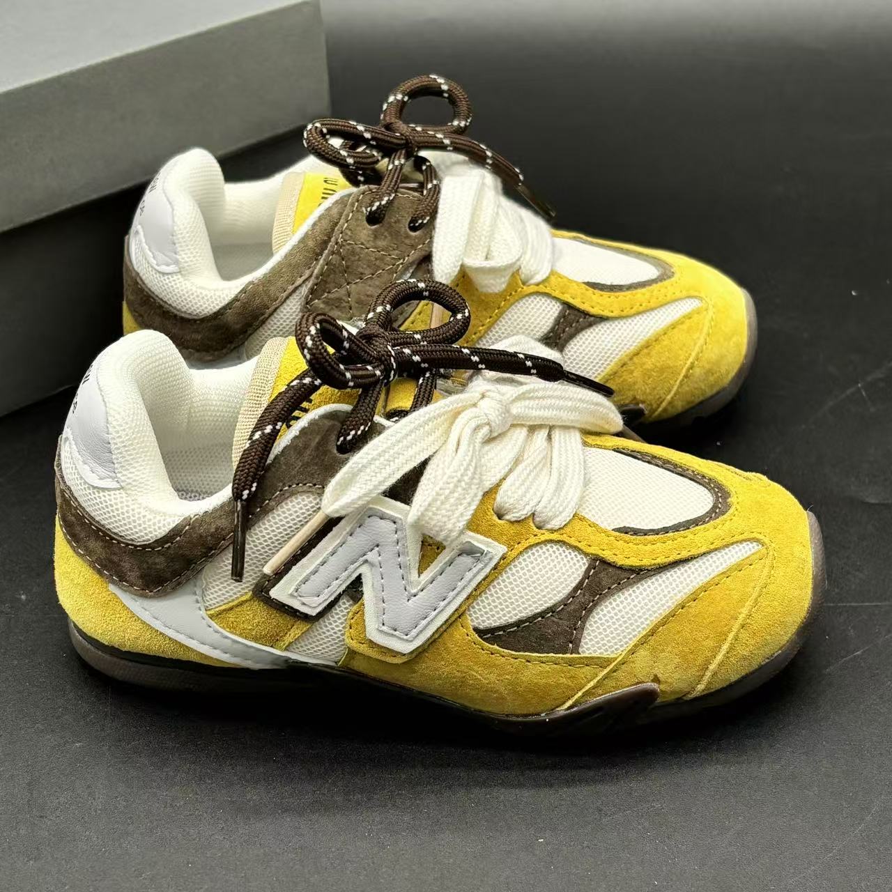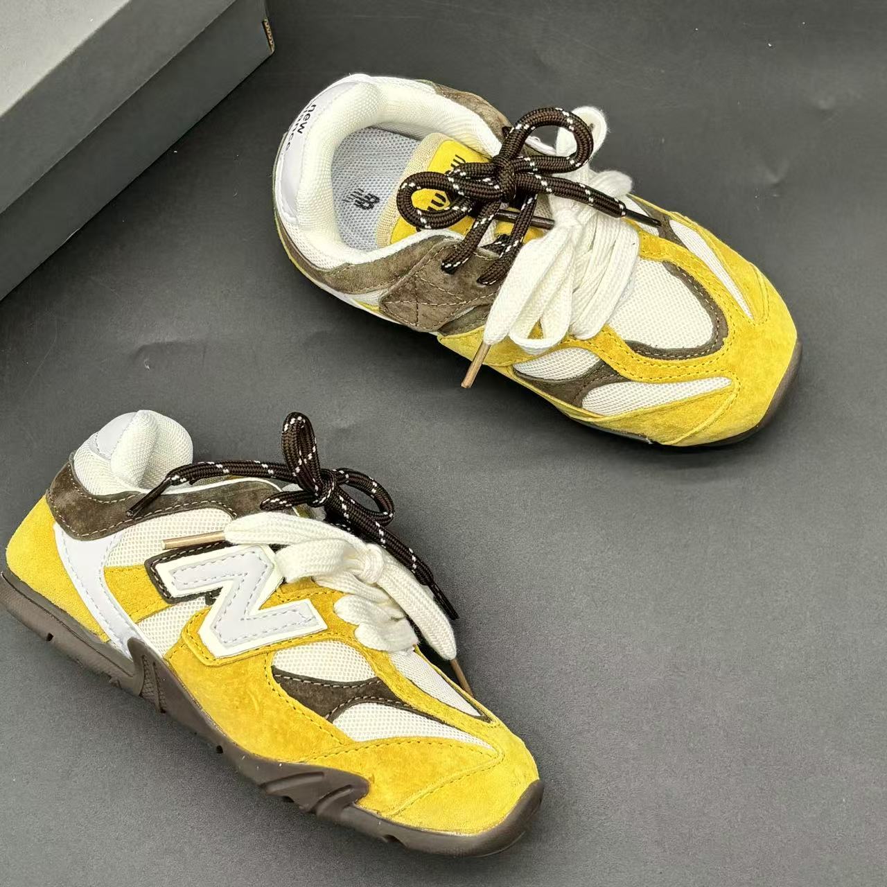 High-end children's shoes, men's and women's shoes, NB miumiu collaboration Pig eight leather mesh Velcro children's shoes, with lacing design, comfortable and good-looking to wear, size: 24-37