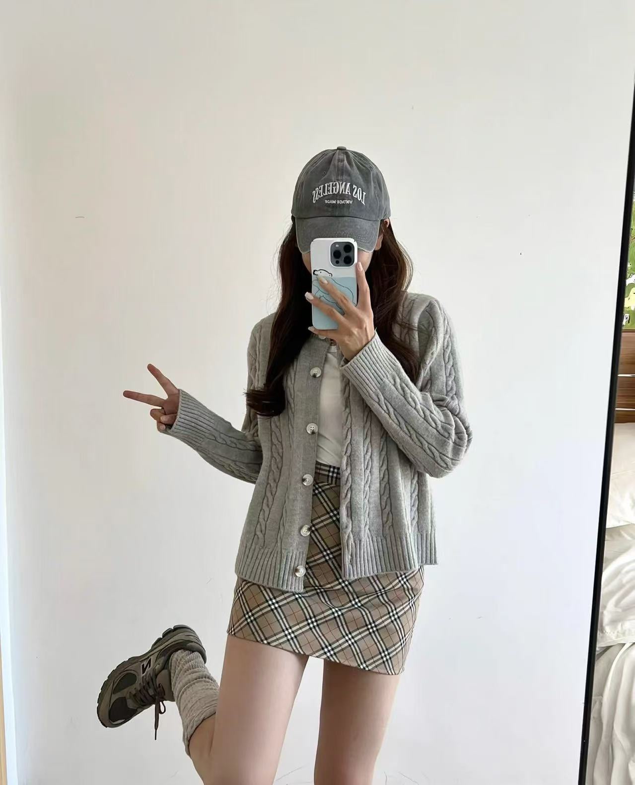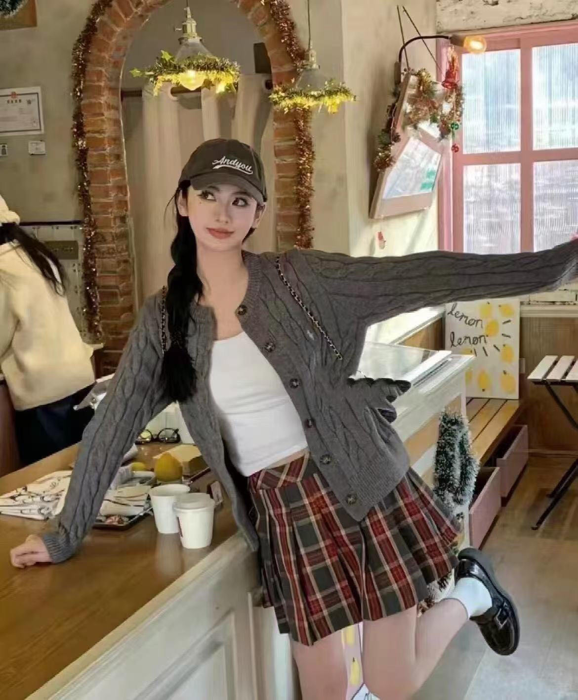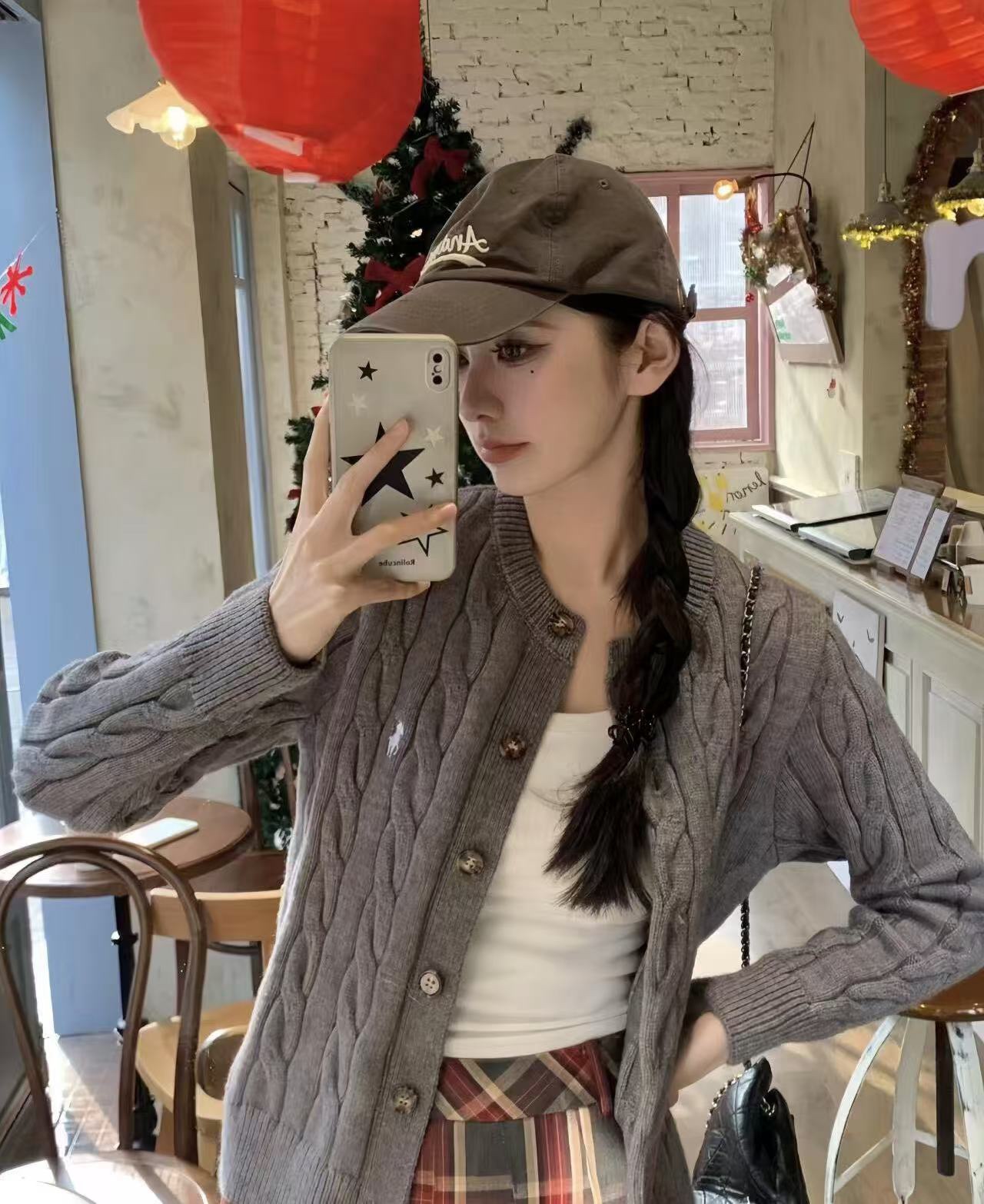 The wearing effect of Ralph Lauren classic braided knitted sweater cardigan coat (Women's style) #