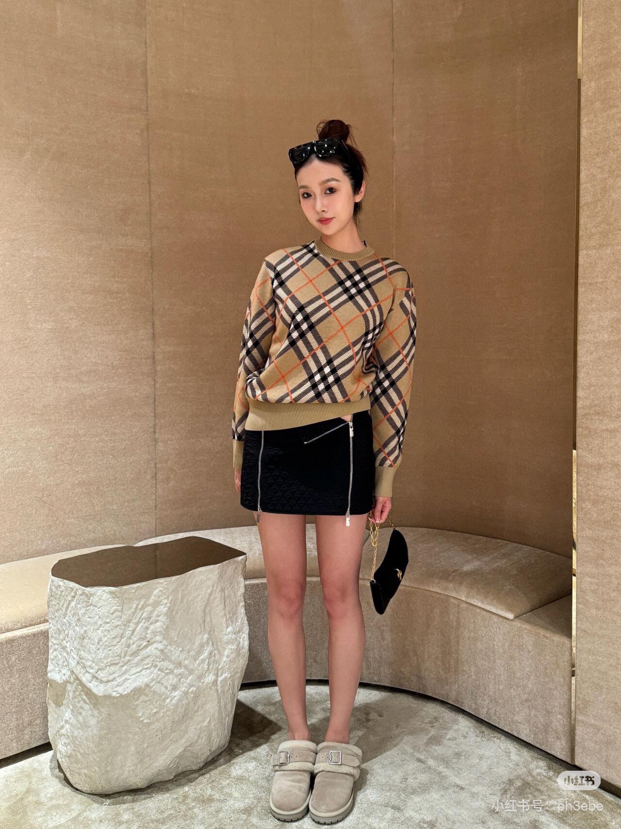 A collection of Burberry round-neck knitted jacquard texture diamond-patterned sweaters for the upper body