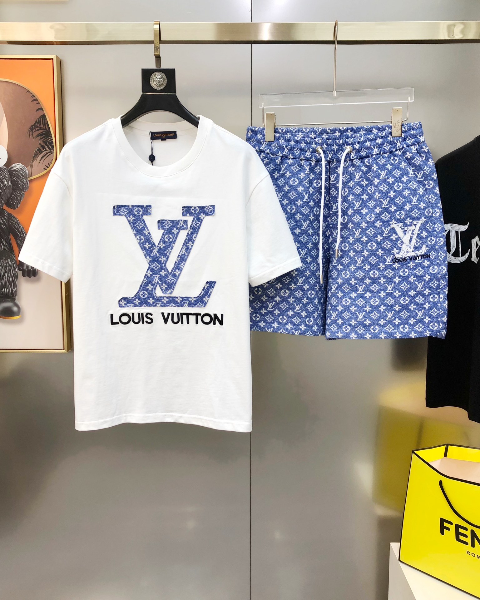 LV Louis Vuitton Spring/Summer 2025 new single men's casual set short sleeves and shorts for sale without disassembly ?? The official website is also selling the big hit ?? ? high version fashionable and versatile ? three-dimensional embroidered letter patchwork logo pattern design made of original imported pure cotton fabric pants jacquard process denim pure cotton fabric soft and delicate hand feel comfortable to wear Original imported engraved hardware accessories for customers, fine workmanship by the OEM factory, smooth lines, exquisite craftsmanship, superb style, very fashionable and cool when worn ?? highly recommended! Counter size: M-3XL (The largest size can wear about 190 pounds. Please report your height and weight when placing an order.) Shipped the next day in black and white