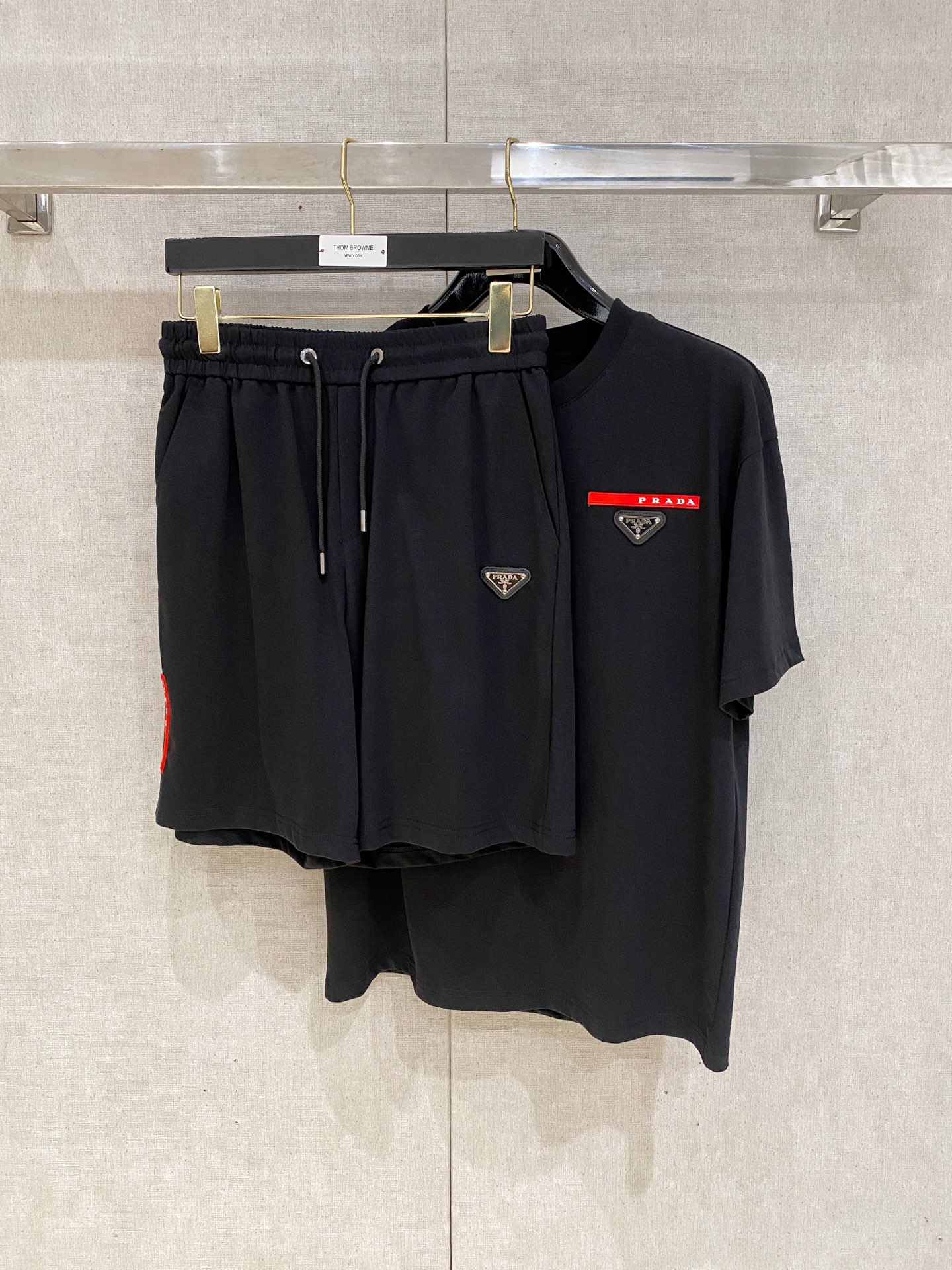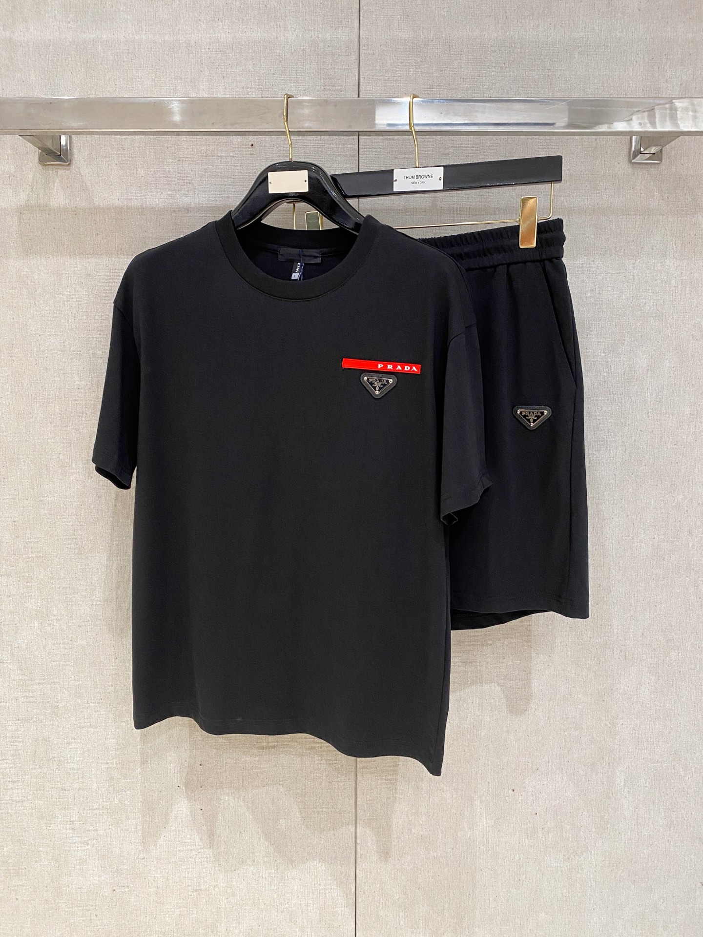 Prada ???? high-end custom 2025 spring/summer new collection launch counter the latest short-sleeved and short-shorts casual set high-end custom design avant-garde fashion! The brand logo emphasizes high-end custom pure cotton fabric with meticulous craftsmanship design. Soft to the touch. Comfortable to wear. Counter level exquisite vehicle lines. The workmanship is exquisite. The wearing effect is incredibly cool! Essential items for stylish men!