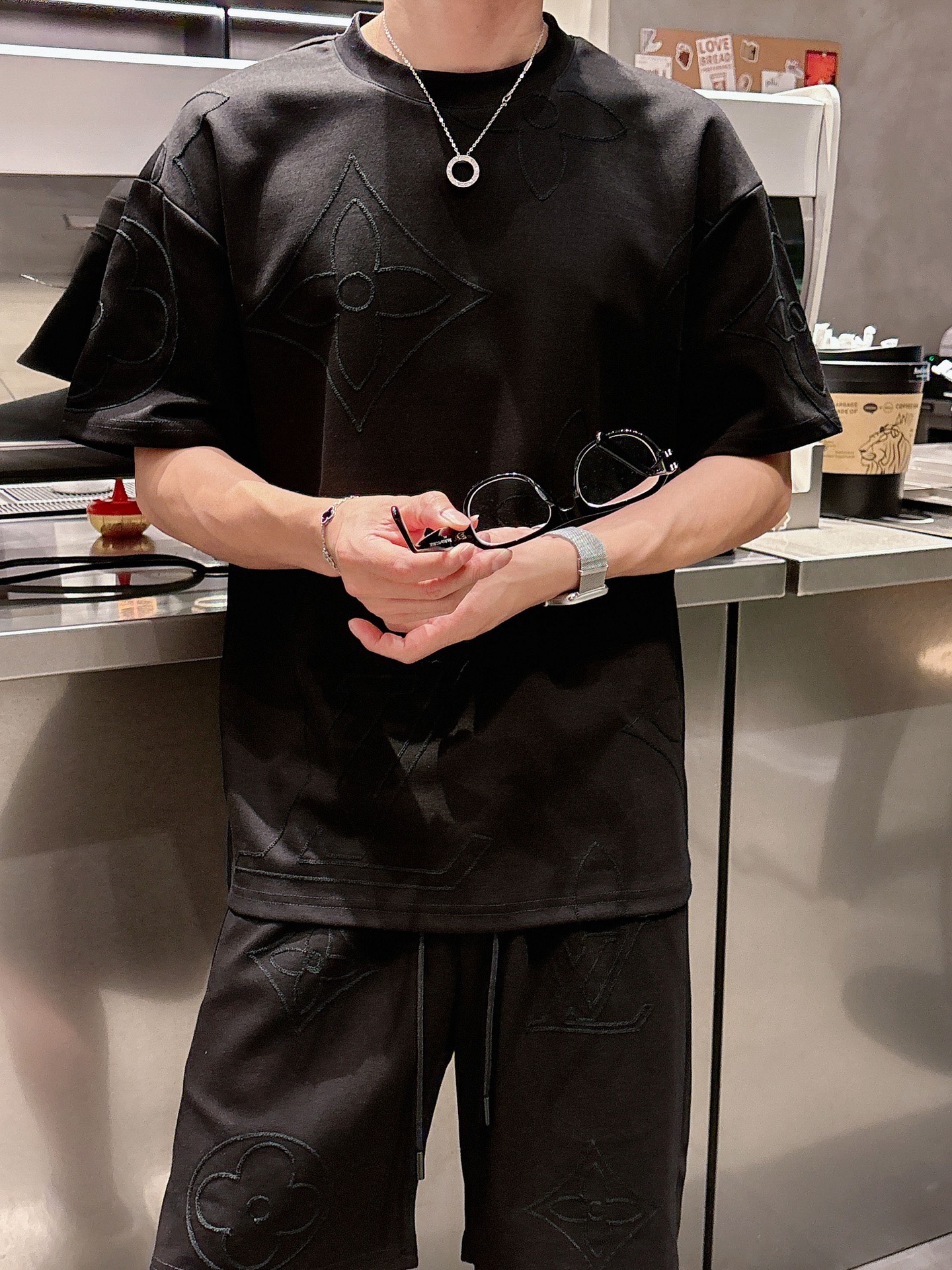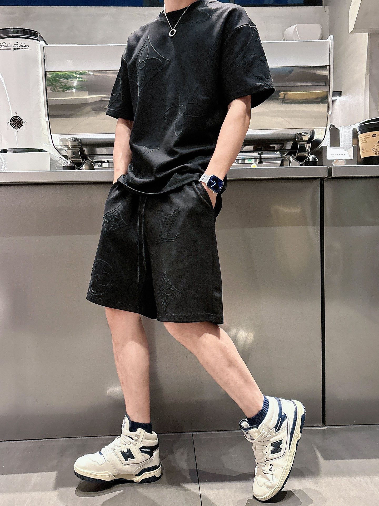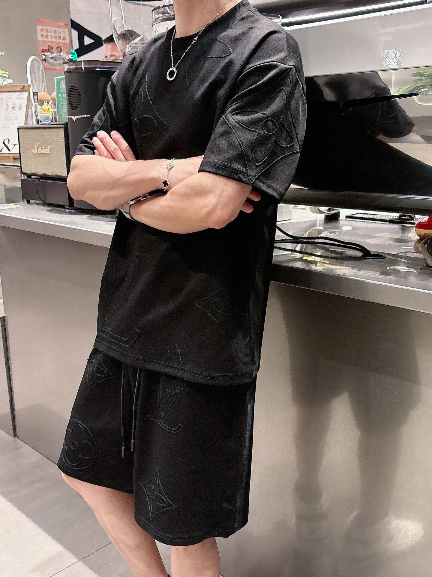LV (Louis vuitton) ???? high-end custom 2025 spring/summer new collection Launch counter the latest short-sleeved and short-shorts casual set, high-end custom design avant-garde and fashionable! The brand logo emphasizes high-end custom pure cotton fabric with meticulous craftsmanship design. Soft to the touch. Comfortable to wear. Counter level exquisite vehicle lines. The workmanship is exquisite. The wearing effect is incredibly cool! Essential items for stylish men! Size: M-3XL!!