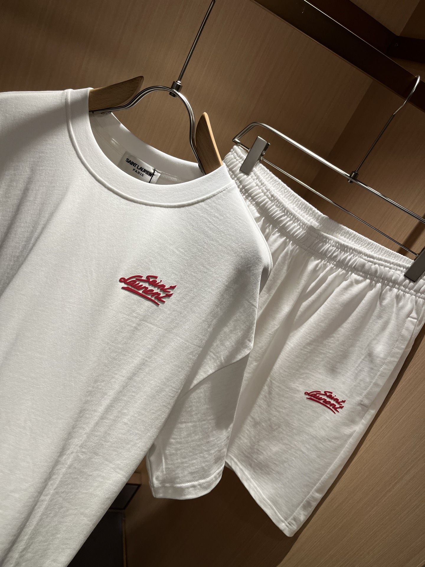SAINT LAURE*T new spring/Summer 2025 unisex ?? casual set, trendy light luxury new product debut original single reissue product high-end quality market highest version milan fashion designer style first look, exclusive in-stock sale; Original exclusive pure cotton fabric provided by customers! The front and back are designed with a simple, elegant and exquisite letter logo embossing process! The wearing effect is amazing, comfortable and close-fitting, highlighting one's temperament! Size: M-2XL