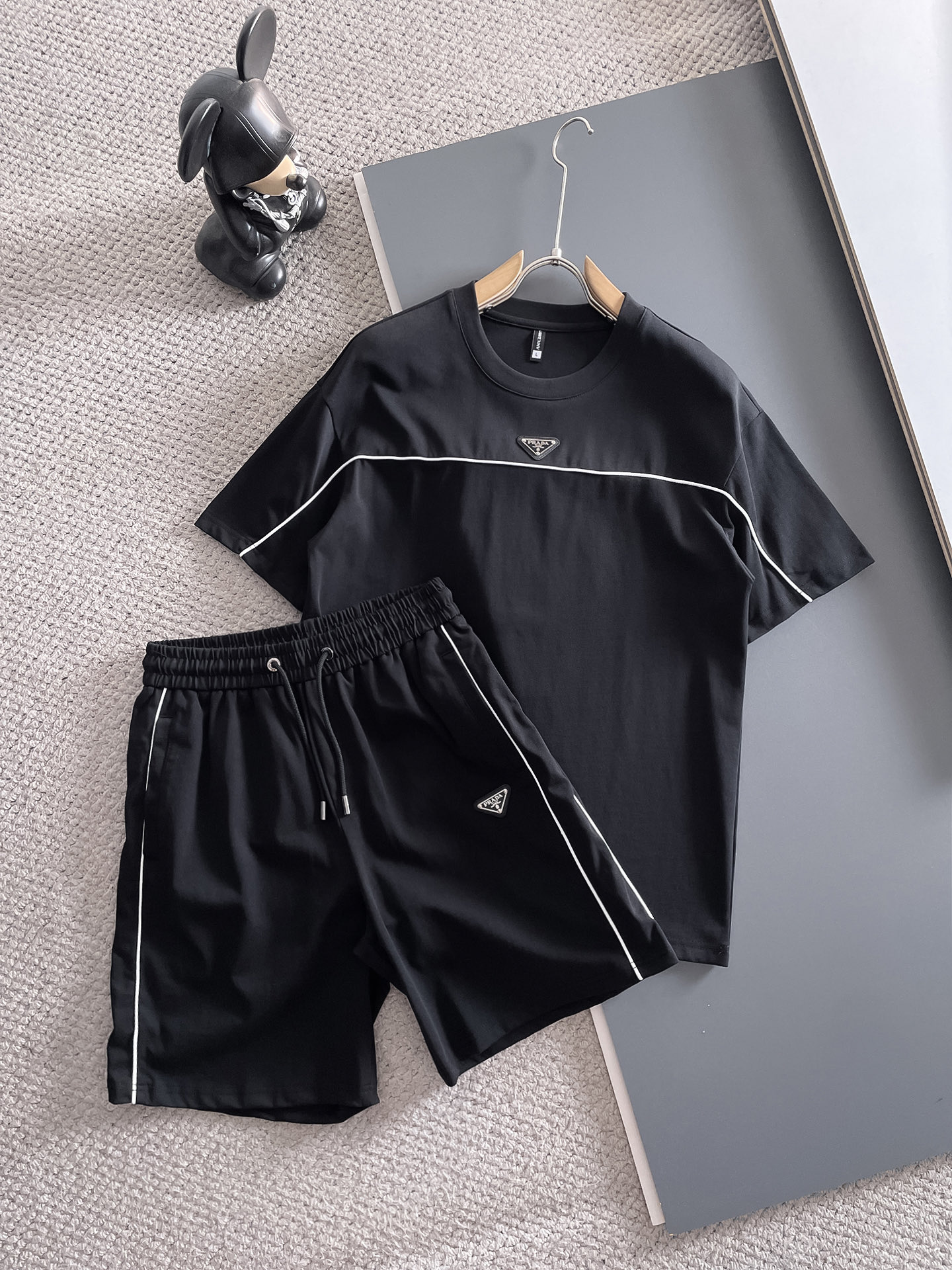Prada ???? high-end custom 2025 spring/summer new collection launch counter the latest short-sleeved and short-shorts casual set high-end custom design avant-garde fashion! The brand logo emphasizes high-end custom pure cotton fabric with meticulous craftsmanship design. Soft to the touch. Comfortable to wear. Counter level exquisite vehicle lines. The workmanship is exquisite. The wearing effect is incredibly cool! Essential items for stylish men! Size: M-3XL