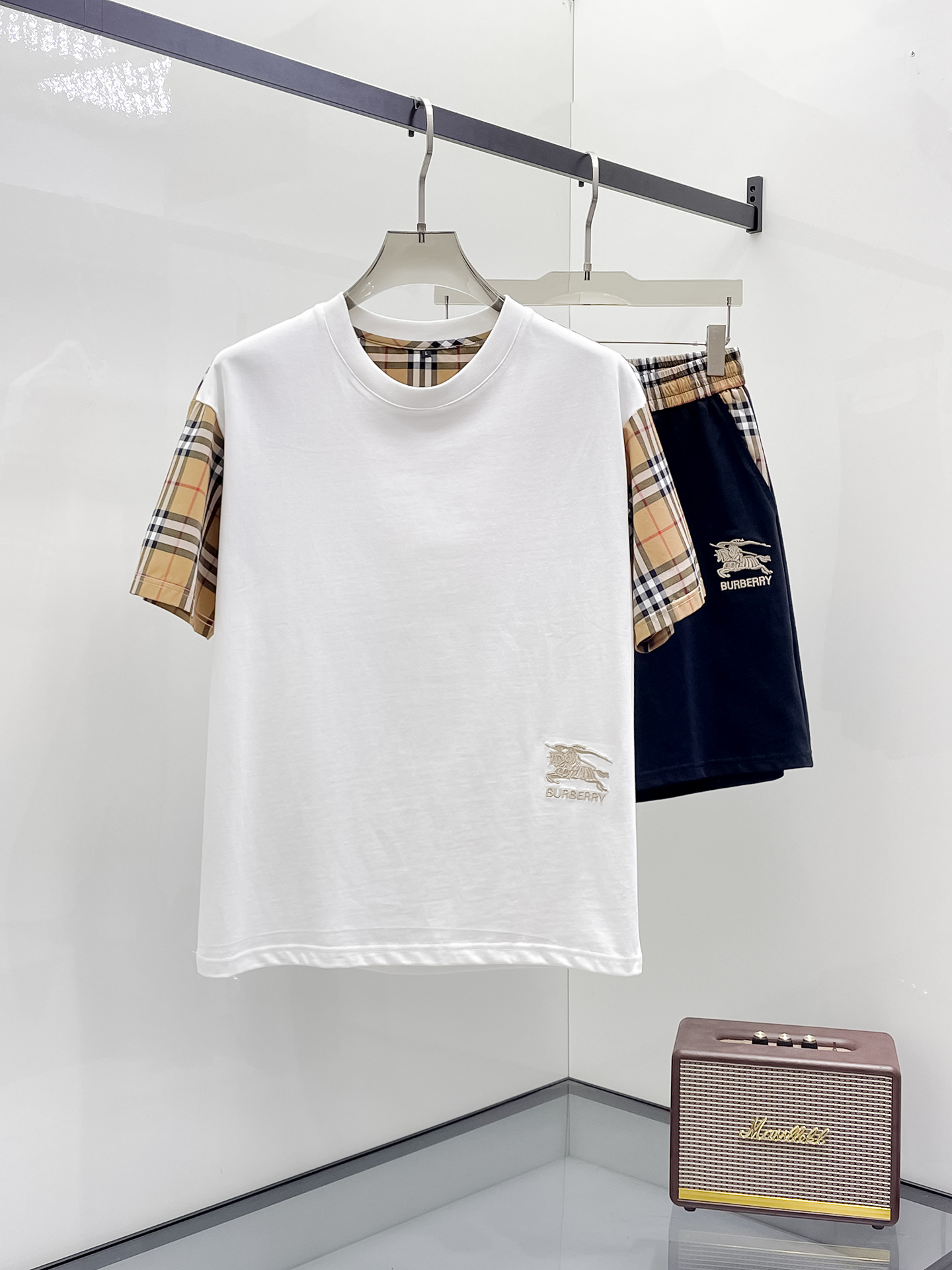 Burberry 2025ss Spring/Summer New Casual short-sleeved and short-shorts set! The casual set with a fashion flavor that celebrities love the most is simple and elegant. The official website features a 1:1 craftsmanship design! The clean and neat cut exudes a strong urban style. Exclusive top-quality custom fabric is available. The hand feel is soft, dry and comfortable, and the wearing effect is crisp and stylish. The three-dimensional cutting process and the pattern are all of high standards, with appropriately sized silhouettes! It's not tight at all. Wearing it makes you feel good. With so many top-quality raw materials, it creates a high-end product with unparalleled value. It has all three standards and is the first choice for high-end, trendy and fashionable people. The wearing effect is super nice! Size: M-3XL