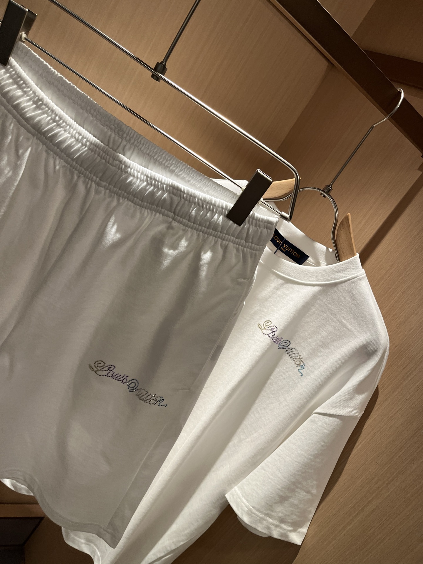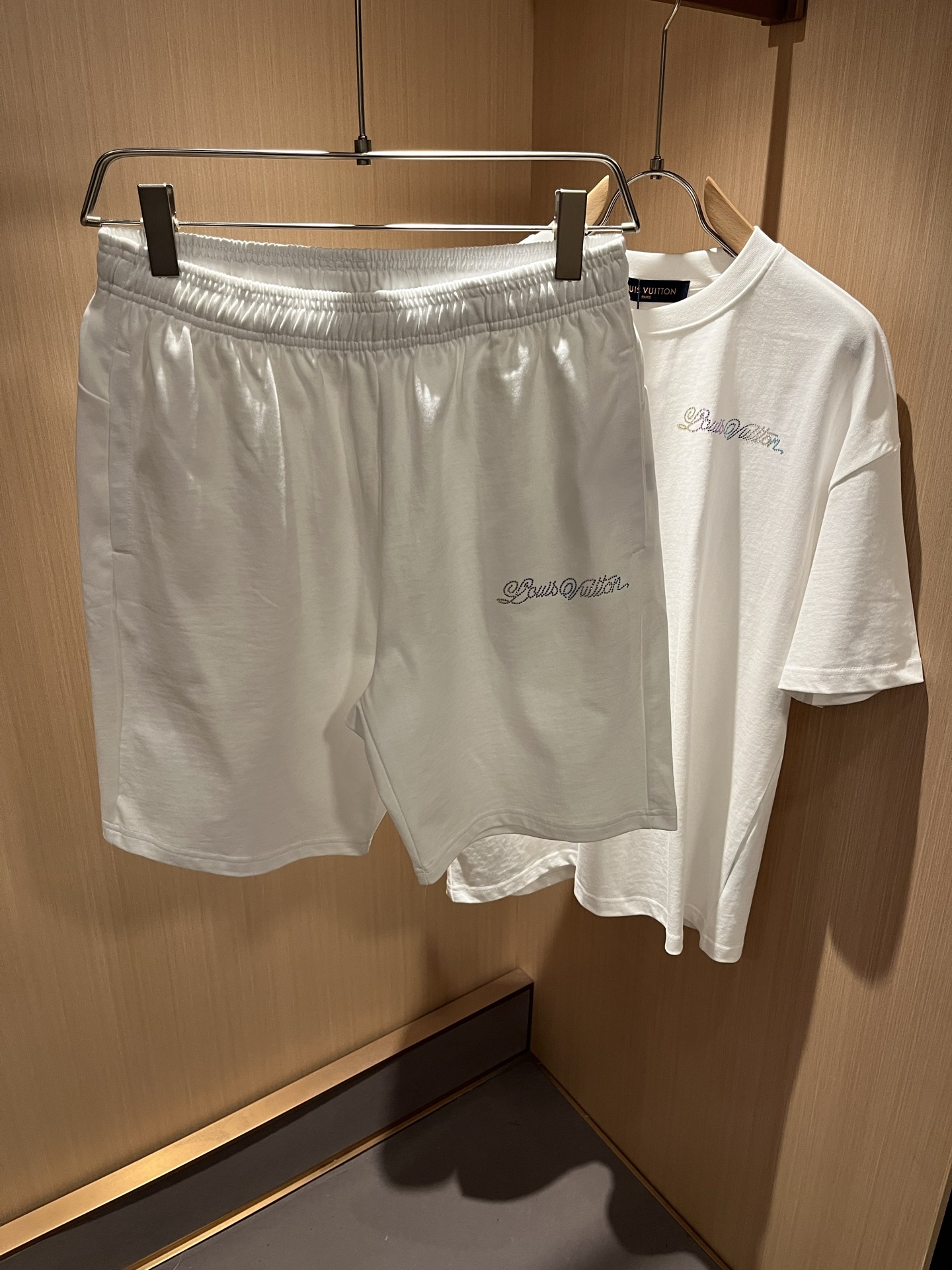 LouisVuitt* Louis * has launched its new Spring/Summer 2025 collection. This is a very fashionable and avant-garde casual suit for both men and women, with the logo pattern decorated with hot diamonds! Different from the past, it proclaims the brand's design philosophy that has been passed down for many years! Its eye-catching appeal is no less than that of any classic style, perfectly presenting a sense of fashion, luxury and sophistication to the world! This product is made of 100% imported cotton material from customers. It is made of high-quality 260g pure cotton fabric, which feels soft, soft, skin-friendly and delicate. The actual product will definitely exceed your imagination. It is extremely comfortable and breathable when worn close to the body. Even if you are sweating profusely, there will be no feeling of stickiness or stuffiness. It has maximized the sweat-wicking and moisture-absorbing properties! Size: M-2XL