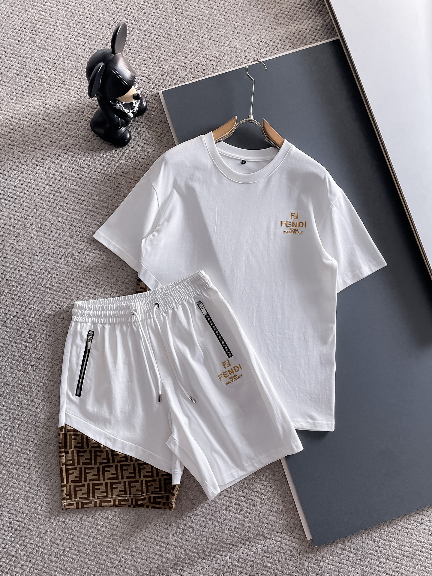 Fendi ???? high-end custom 2025 spring/summer new collection First Release counter the latest short-sleeved and short-shorts casual set high-end custom design avant-garde and fashionable! The brand logo emphasizes high-end custom pure cotton fabric with meticulous craftsmanship design. Soft to the touch. Comfortable to wear. Counter level exquisite vehicle lines. The workmanship is exquisite. The wearing effect is incredibly cool! Essential items for stylish men! Size: M-3XL