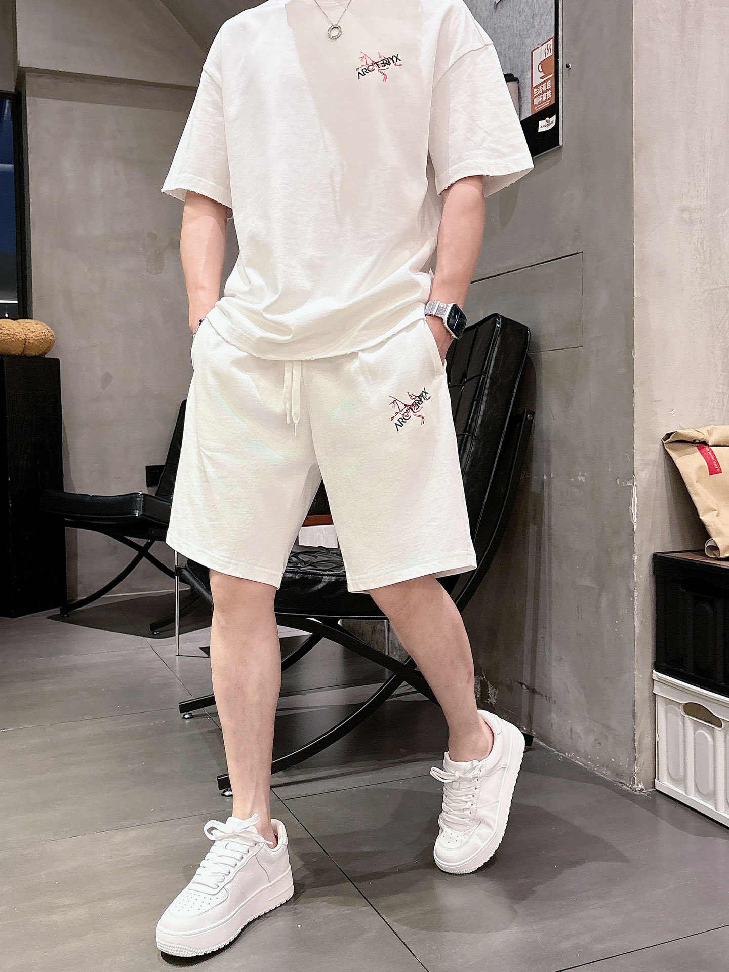 Arc 'teryx ???? high-end custom collar, sleeve and hem with perforated design. New spring/summer 2025 collection first release at the counter. Latest short sleeves and shorts casual set. Heavy concave and convex pattern design. High-end pure cotton custom design, avant-garde and fashionable! The brand logo emphasizes high-end custom pure cotton fabric with meticulous craftsmanship design. Soft to the touch. Comfortable to wear. Counter level exquisite vehicle lines. The workmanship is exquisite. The wearing effect is incredibly cool! Essential items for stylish men! Size: M-2XL loose style. Please report your height and weight