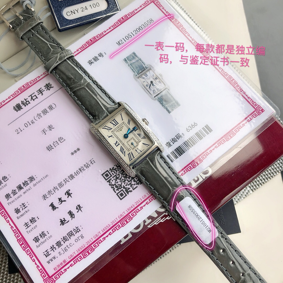 Longines Dolcevina, genuine diamond original movement. Exclusive and tough stuff is coming! Channel goods! Support any inspection. The same as Lin Zhiling's! Longines Dolcevina Crocodile Leather Series! 20.80X 32.00mm quartz ladies' wristwatch! The dial is set with 46 real diamonds. Authentic L178 quartz movement! It has a low battery reminder function! When the quartz movement runs out of power, the second hand will jump every four seconds! At this time, batteries are needed! Among Longines' top-ranked watches, the Dolce Vita series is the queen. Named "Dolce Vita" in Italian, it implies a sweet life and the encounter of Italian life with modern romance. Through geometric lines and gentle curves, it creates a modern elegance and charming posture. The carvings on the silver dial and the exquisite details such as blue steel hands all highlight the pure elegance and nobility of the wearer If not used, it will not affect secondary sales. Support.