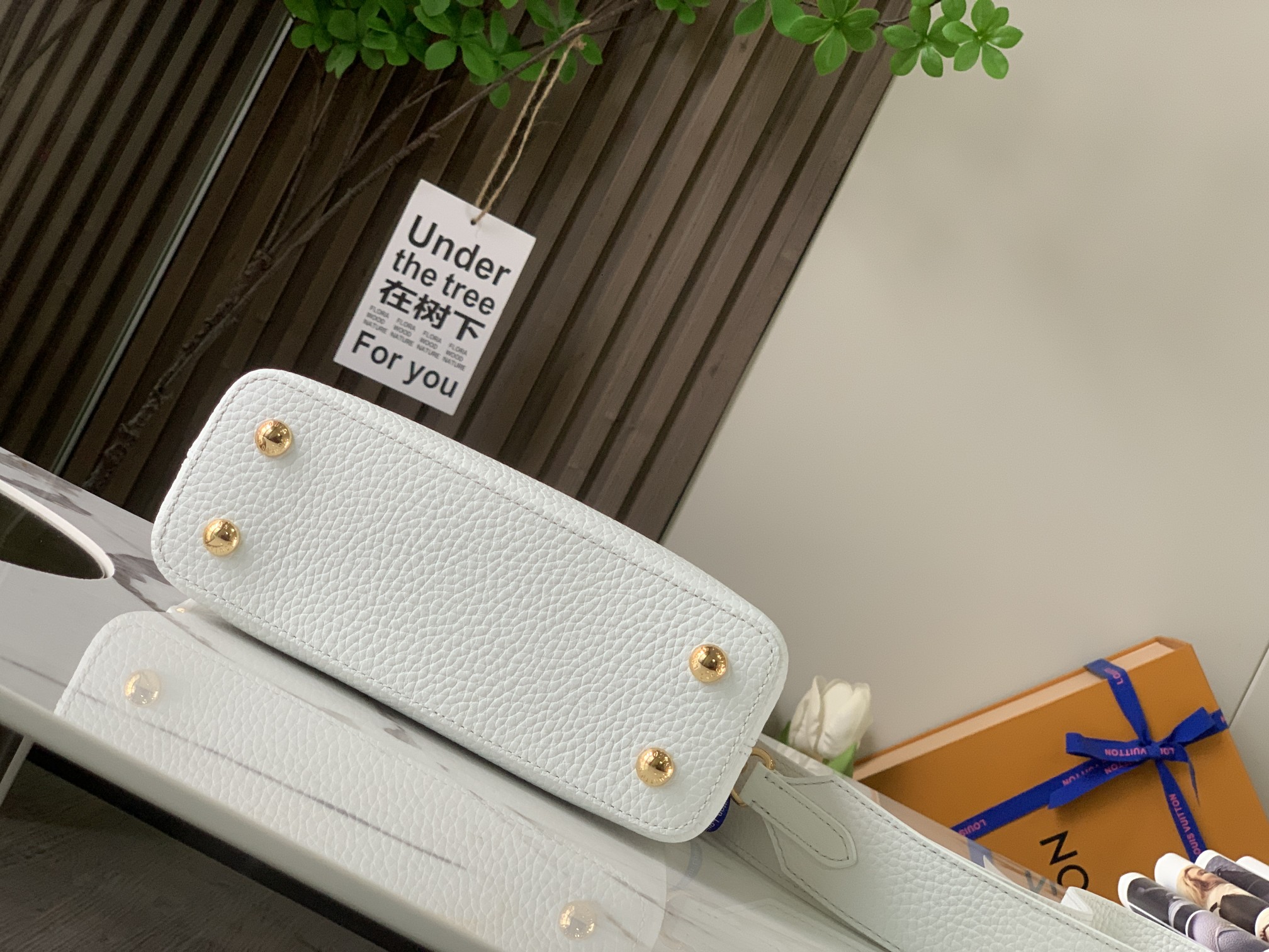 Dynamic CHIP [PREMIUM ORIGINAL FACTORY leather ?? M56669 new version white GOLD buckle] This Capucines mini handbag is made of pure black Taurillon leather, with a golden Monogram floral "crown" on the top, which is hand-polished and decorated with leather. The cute mini size and exquisite decorative floral patterns are soft and charming. The fashionable detachable wide strap and the top leather handle offer multiple carrying options. 21 x 14 x 8 centimeters (Length x height x Width)