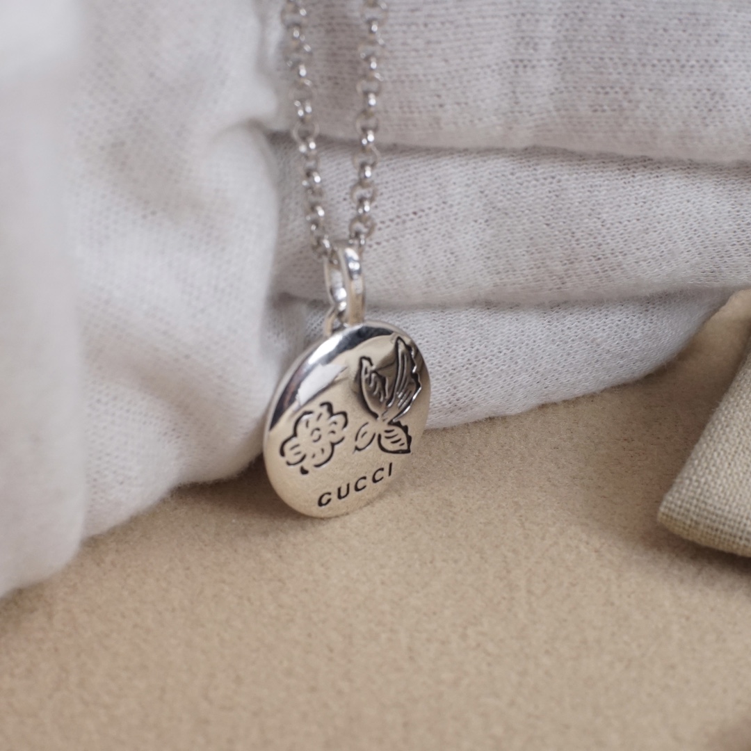 gucci flower-and-bird round/heart-shaped necklace The Blind for love Fearless series is highly recommended. It features pure silver engraved flower and bird designs, letters on the back, and an eternal classic work Necklace LACES /Necklace