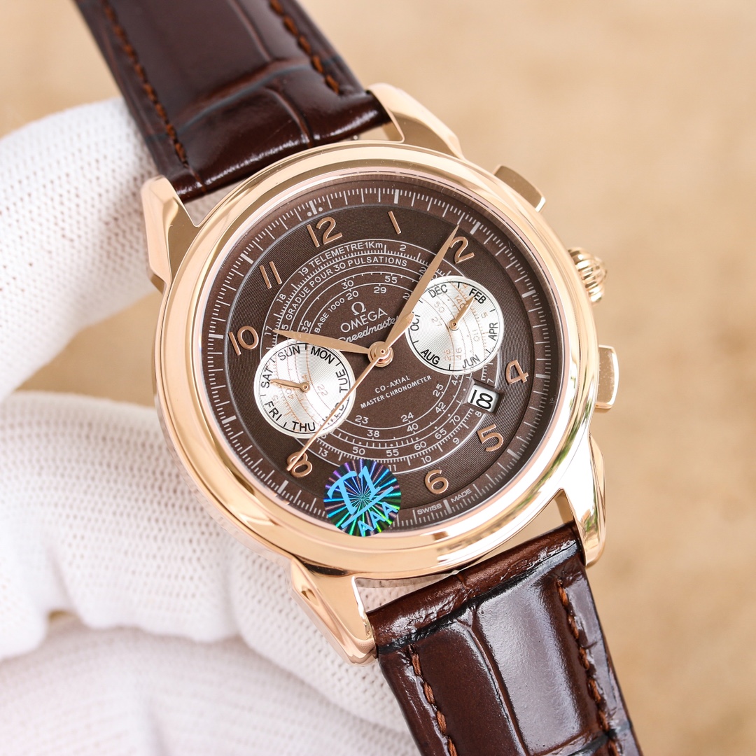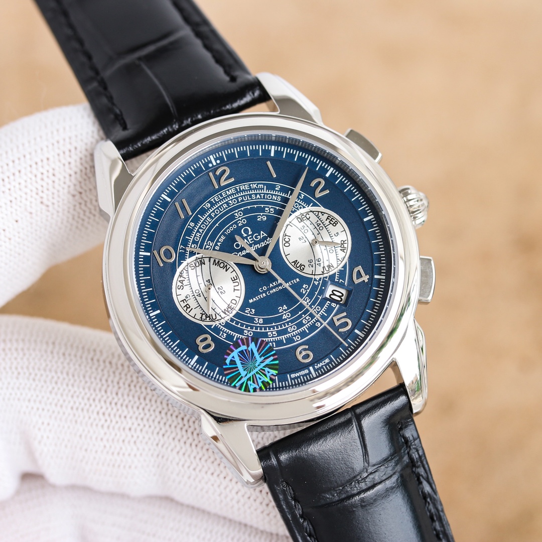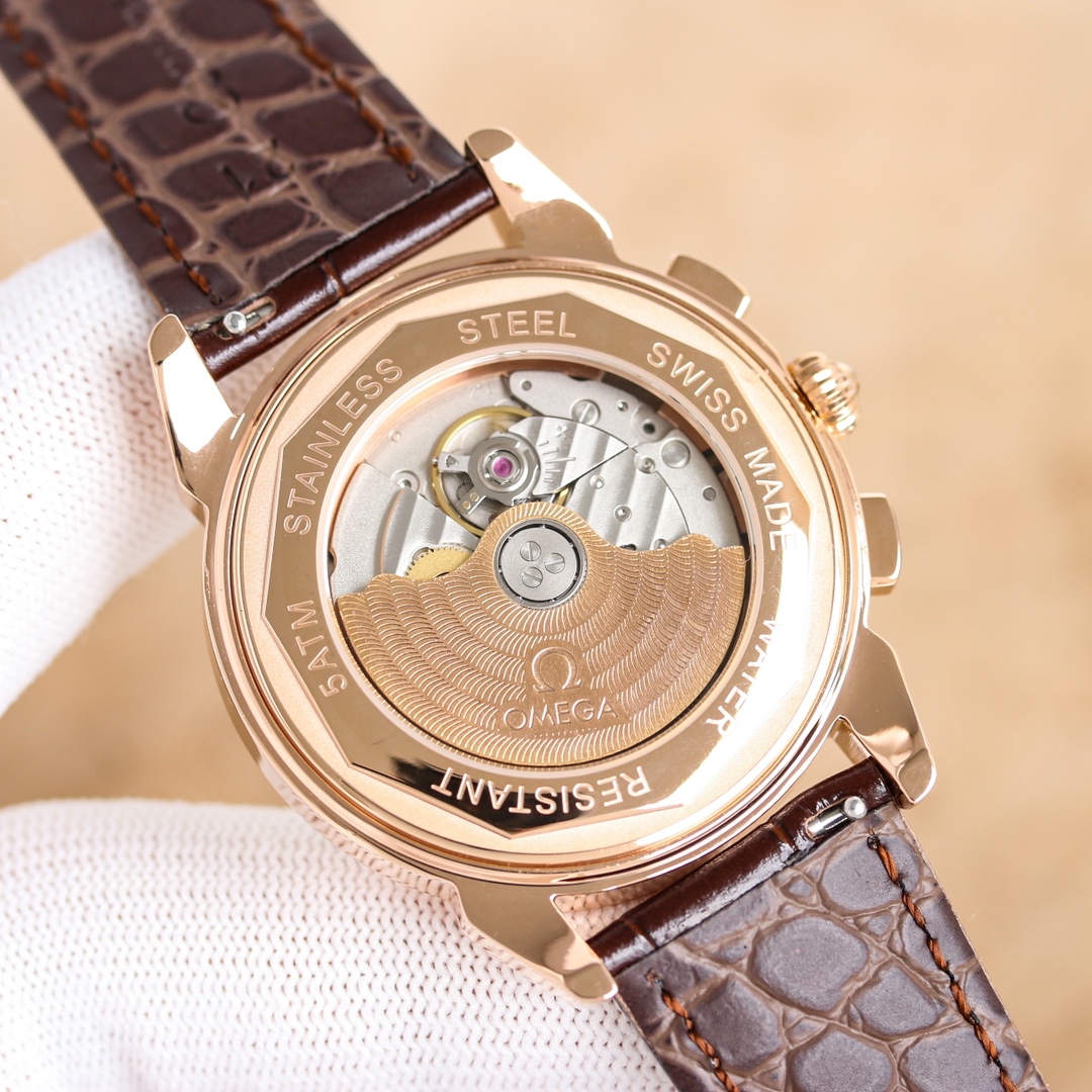 OMEGA Complex Series six-hand Men's Watch [Heart] Bestseller [Heart] multi-functional Wristwatch! 1 ? Mechanical watch with original imported 9100 day-month moon phase kinetic function movement! 2 ? The classic exclusive inner shadow brick on the dial for the hour markers further enhances the elegance of this watch [baring teeth] 3 ? LEATHER strap with imported square scale cowhide! 4 ? Watch crystal with double sapphire crystal! 5 ? Transparent back cover! 6 ? 41mm in diameter, 11mm in thickness! This watch integrates functions such as the day of the week, month, date, moon, and sun into one, making it the true standard for the best men's business watch! It is a representative work of high-end wristwatches! Honorably produced, it enjoys a reputation of noble display. The details reveal the gentleman's nobility, with extraordinary taste. The exquisite craftsmanship is grand and rivals the original product! Consistent inside and out, with unique ingenuity! Welcome to reprint!