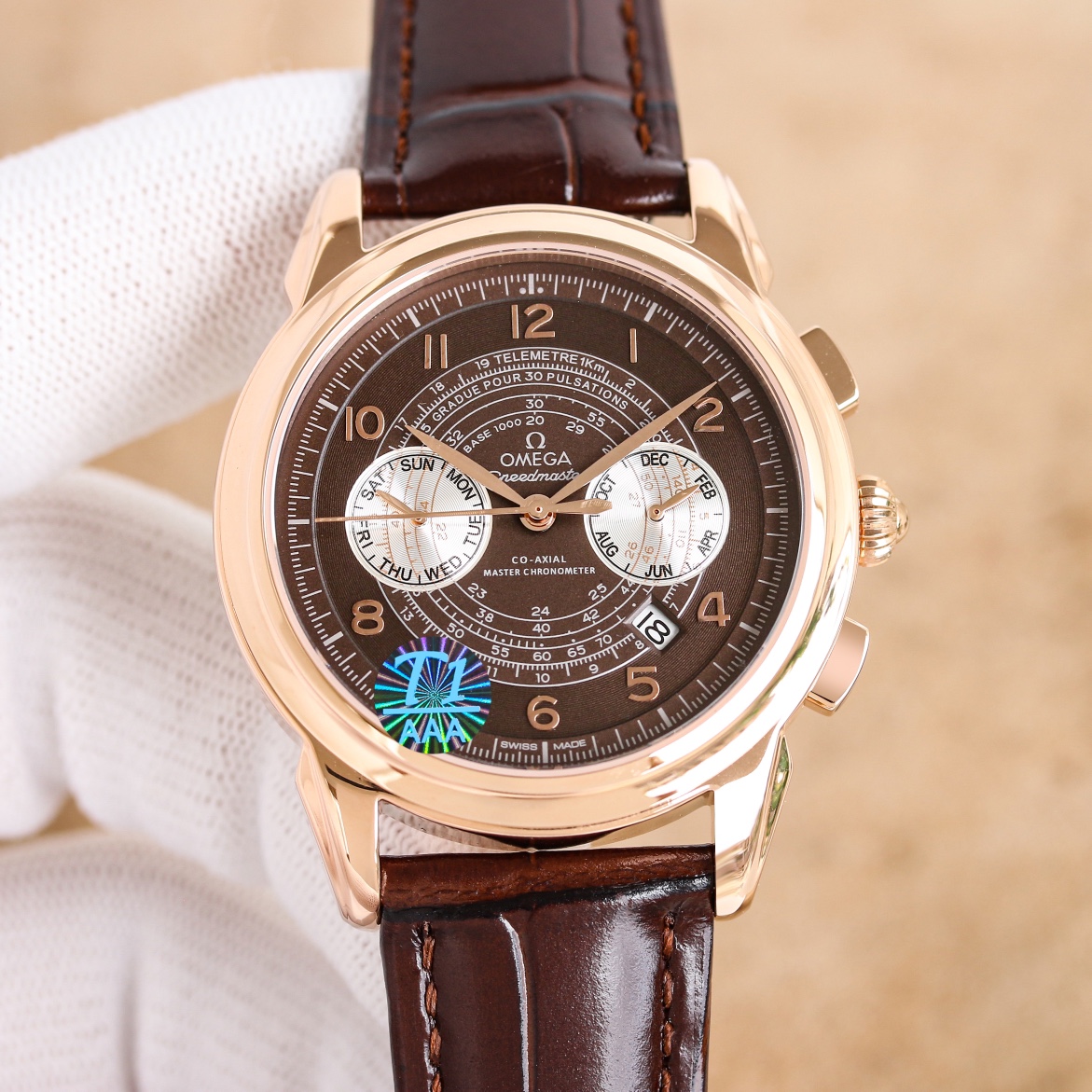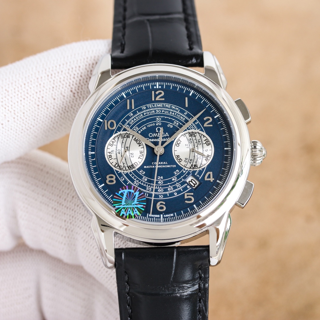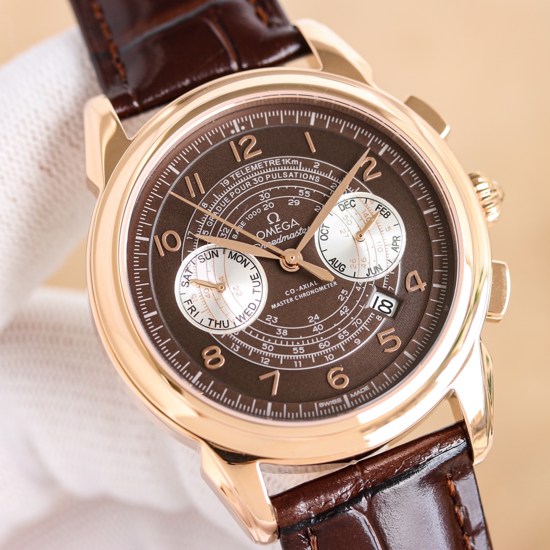 OMEGA Complex Series six-hand Men's Watch [Heart] Bestseller [Heart] multi-functional Wristwatch! 1 ? Mechanical watch with original imported 9100 day-month moon phase kinetic function movement! 2 ? The classic exclusive inner shadow brick on the dial for the hour markers further enhances the elegance of this watch [baring teeth] 3 ? LEATHER strap with imported square scale cowhide! 4 ? Watch crystal with double sapphire crystal! 5 ? Transparent back cover! 6 ? 41mm in diameter, 11mm in thickness! This watch integrates functions such as the day of the week, month, date, moon, and sun into one, making it the true standard for the best men's business watch! It is a representative work of high-end wristwatches! Honorably produced, it enjoys a reputation of noble display. The details reveal the gentleman's nobility, with extraordinary taste. The exquisite craftsmanship is grand and rivals the original product! Consistent inside and out, with unique ingenuity! Welcome to reprint!