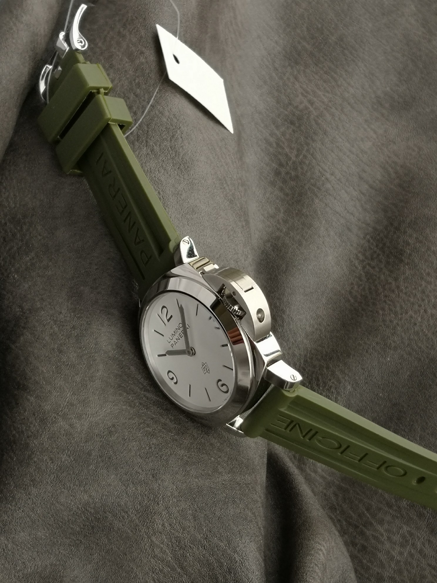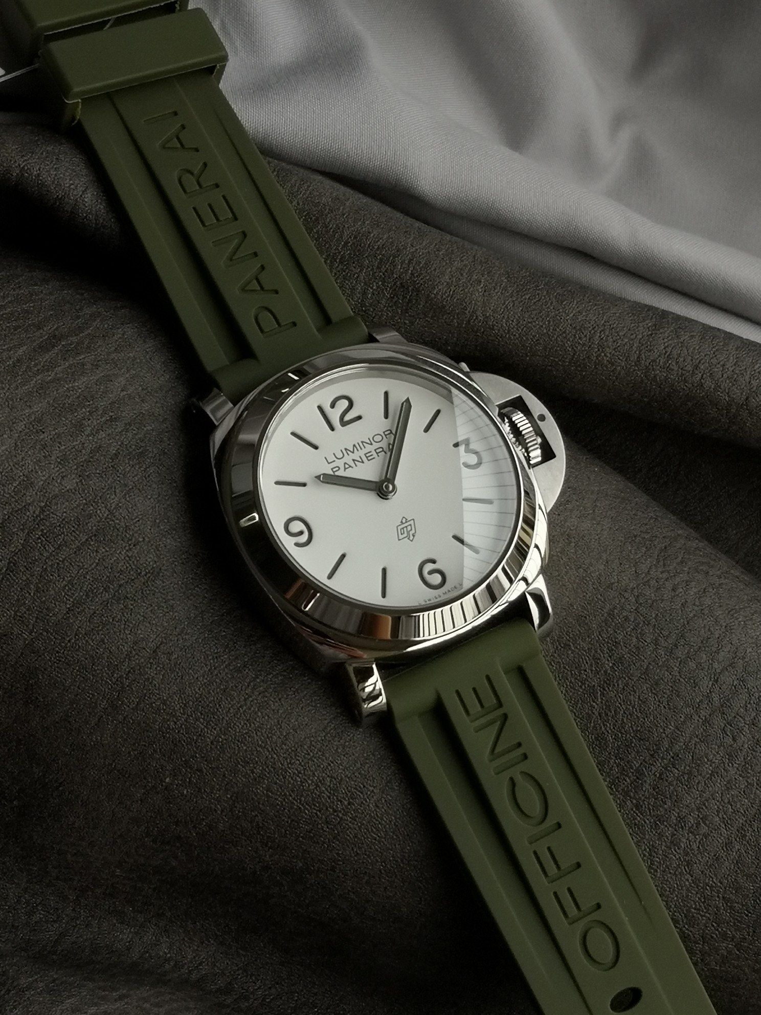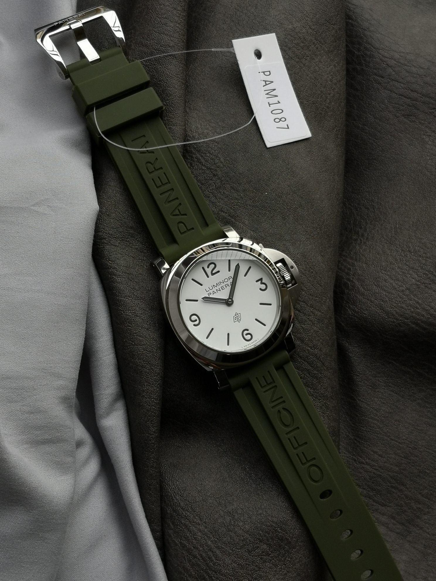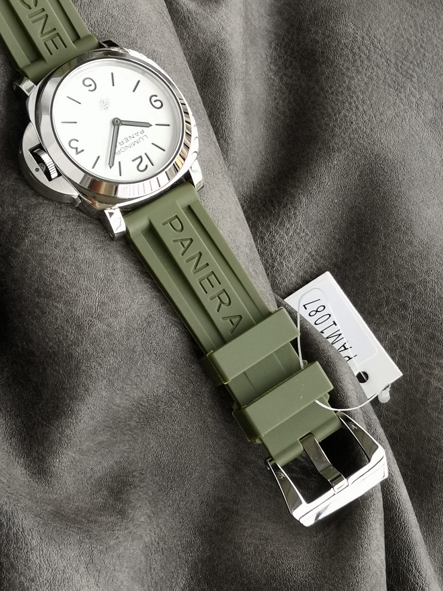 Panerai 1087 series, Luminor Panerai Pam1087 watch, equipped with 6497 hand-wound movement, super luminous, green rubber strap, 44mm diameter, white matte dial with polished stainless steel case, classic and simple, Panerai's latest entry-level choice.