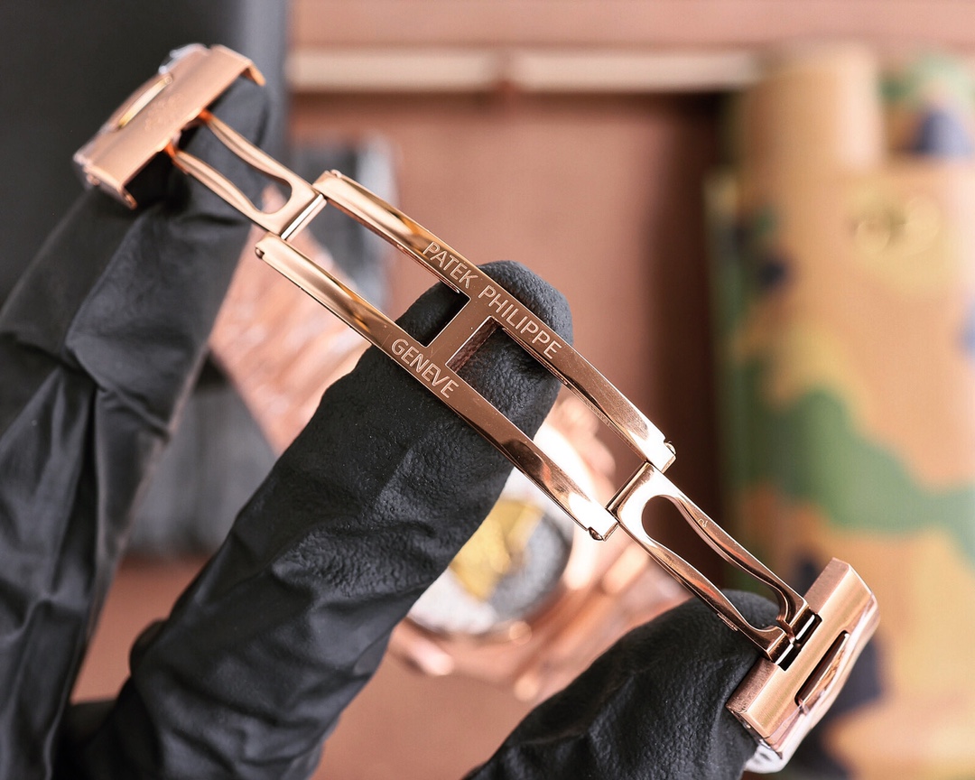 The all-new Patek Philippe 5712GR, the "King of Steel Kings", makes a stunning debut! Super all-in-one machine Cal.240 PS IRM C LU. The entire movement consists of 265 parts. The movement gemstones are of the same color and original pigeon blood. It features a flat hairspring, 21,600 vibrations per hour, and a Gyromax balance wheel with adjustable weights, ensuring stability without error. The ultra-thin case case is the thickest of 0.95cm in its class on the market, second only to the original thickness. The newly corrected stainless steel strap has a hinge part developed based on the disassembly of the genuine Patek Philippe Nautilus stainless steel strap, providing a consistent fit effect with the genuine product, outperforming all replicas on the market. The opening and closing Angle of the hinge is the same as that of the genuine product, and the locking sound is the same as that of the genuine product. The exclusive "Blue Ghost and Grey Ghost" are infinitely close to the original version on both sides and stand out from the crowd!
