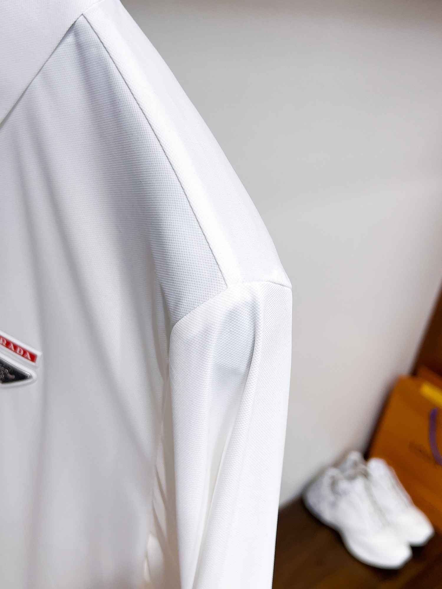 A must-have item for high-end business white-collar workers from Prada! Seamless embossed ice silk casual business short-sleeved Polo, made of technological fabric, ice silk seamless, with an excellent body feel, smooth hand feel and great texture! It has good elasticity and no sense of restraint at all. The fabric comes with breathable mesh, which can absorb moisture and sweat, and dries quickly to keep it dry. The small lapel and front button design shows a tall and straight posture. It is not soft and slippery. The simple style is suitable for both business and casual wear. Highly recommended! High-elasticity ice silk, with a touch as smooth as jade silk, clean and neat, exuding an elegant and gentlemanly demeanor. High-end materials, with the focus on the fabric. Quality control is a must. The hand feel is extremely fine and smooth, and the fabric has a good luster and a good frame feel when worn, making it a mature and high-quality men's wear! Summer sweat dries instantly, a brand-new experience for business commuting and leisure M-4XL