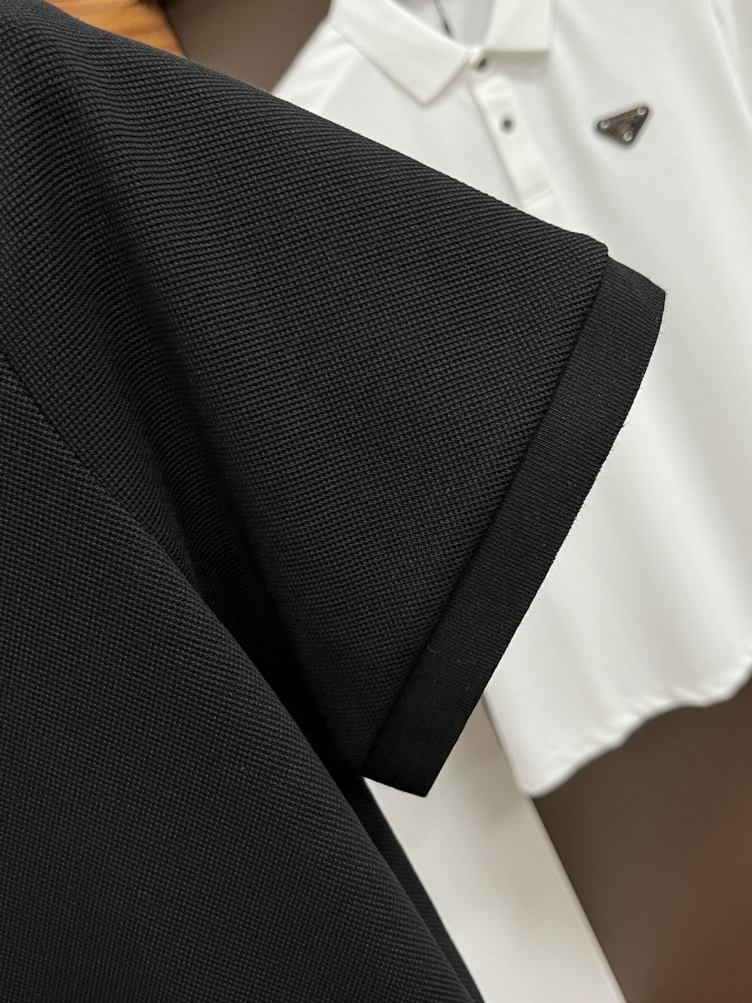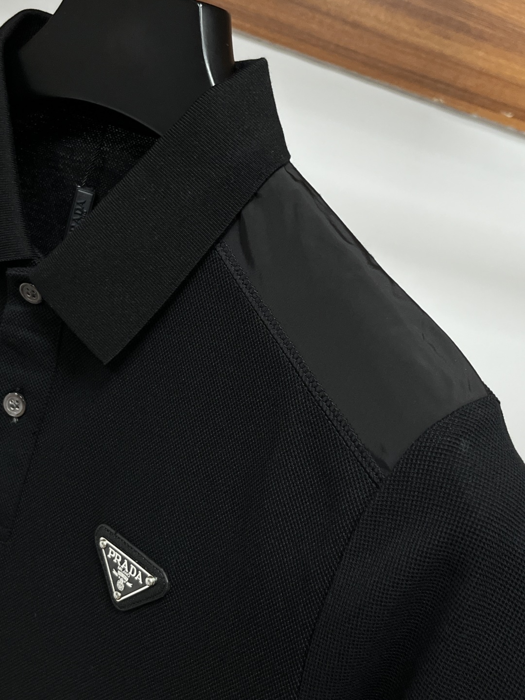 Prada's classic Polo collar design for Spring/Summer 2025, paired with a simple single-breasted button, features sleek and smooth lines that skillfully accentuate the neck, highlighting an elegant and gentlemanly style. The exquisite brand logo on the left chest is made with a seamless embossing process, which is delicate and smooth. It exudes a luxurious texture in a low-key way and showcases the brand's craftsmanship and pursuit of quality in the details. Selected high-quality fabric, soft and smooth to the touch, excellent breathability, comfortable and easy to wear. Whether paired with casual trousers for business occasions, it showcases professionalism and efficiency; Whether paired with jeans to create a casual look or a relaxed and cozy atmosphere, it can fit perfectly. ZJ helps you interpret various styles with a composed posture and fully display your unique taste. Size M-4XL