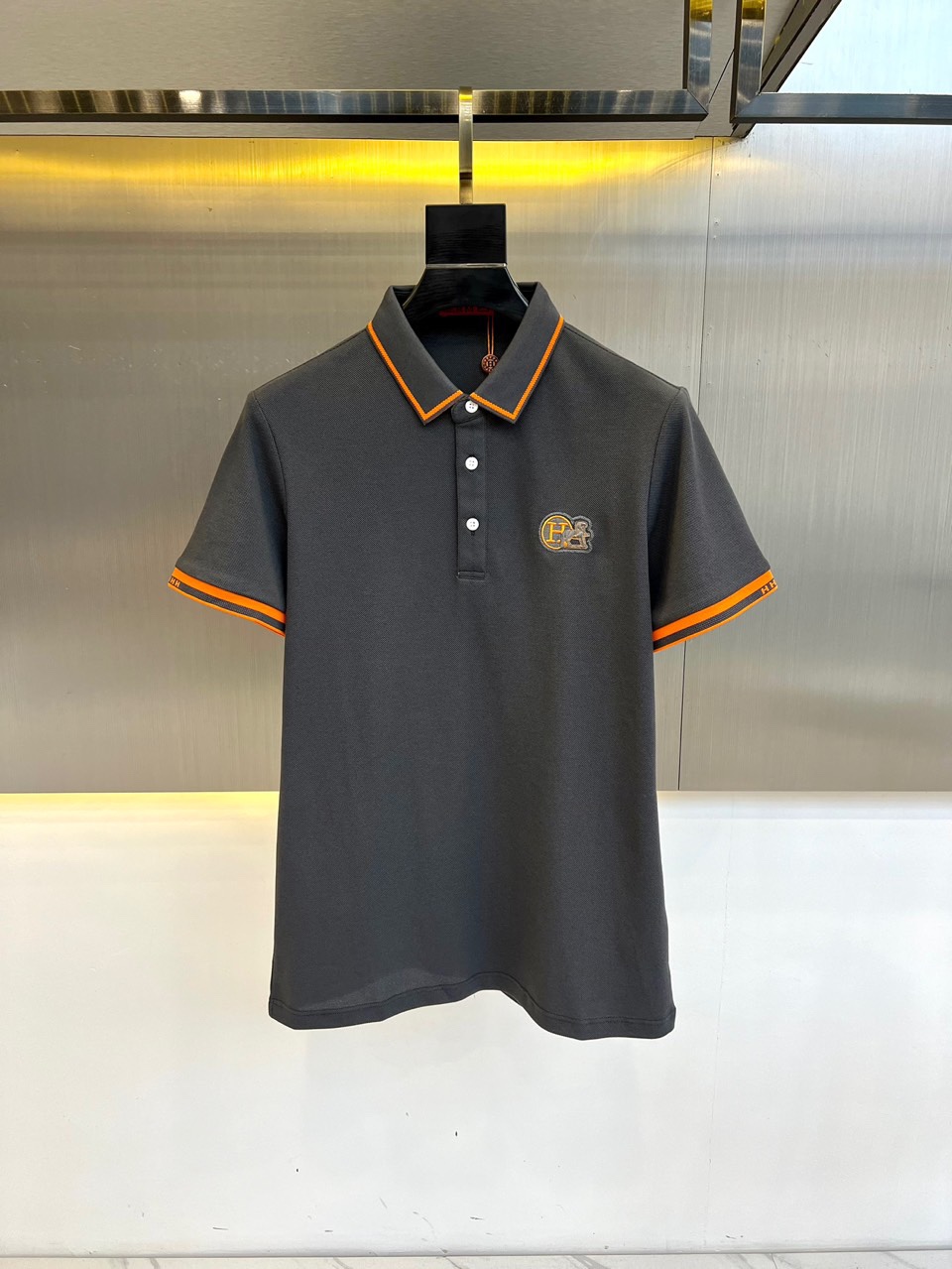 H Hermes, 2025s summer new collection, fashionable lapel shoulder embroidery Polo shirt, made of imported top-quality 100% local mercerized cotton, the fabric is light and thin, with excellent anti-wrinkle and durability. Wearing it is as smooth as ice silk, breathable and skin-friendly as skin clothing, and you don't want to take it off once you wear it! The body of the garment is perfectly integrated with the patterns of fashionable trendsetter, making you the most eye-catching in the crowd and highlighting your extraordinary status symbol. Custom-made imported hardware accessories are provided by customers, adding details and a touch of fashion. The loose and casual cut style! M-4XL (Model 173,143 pounds, size L)