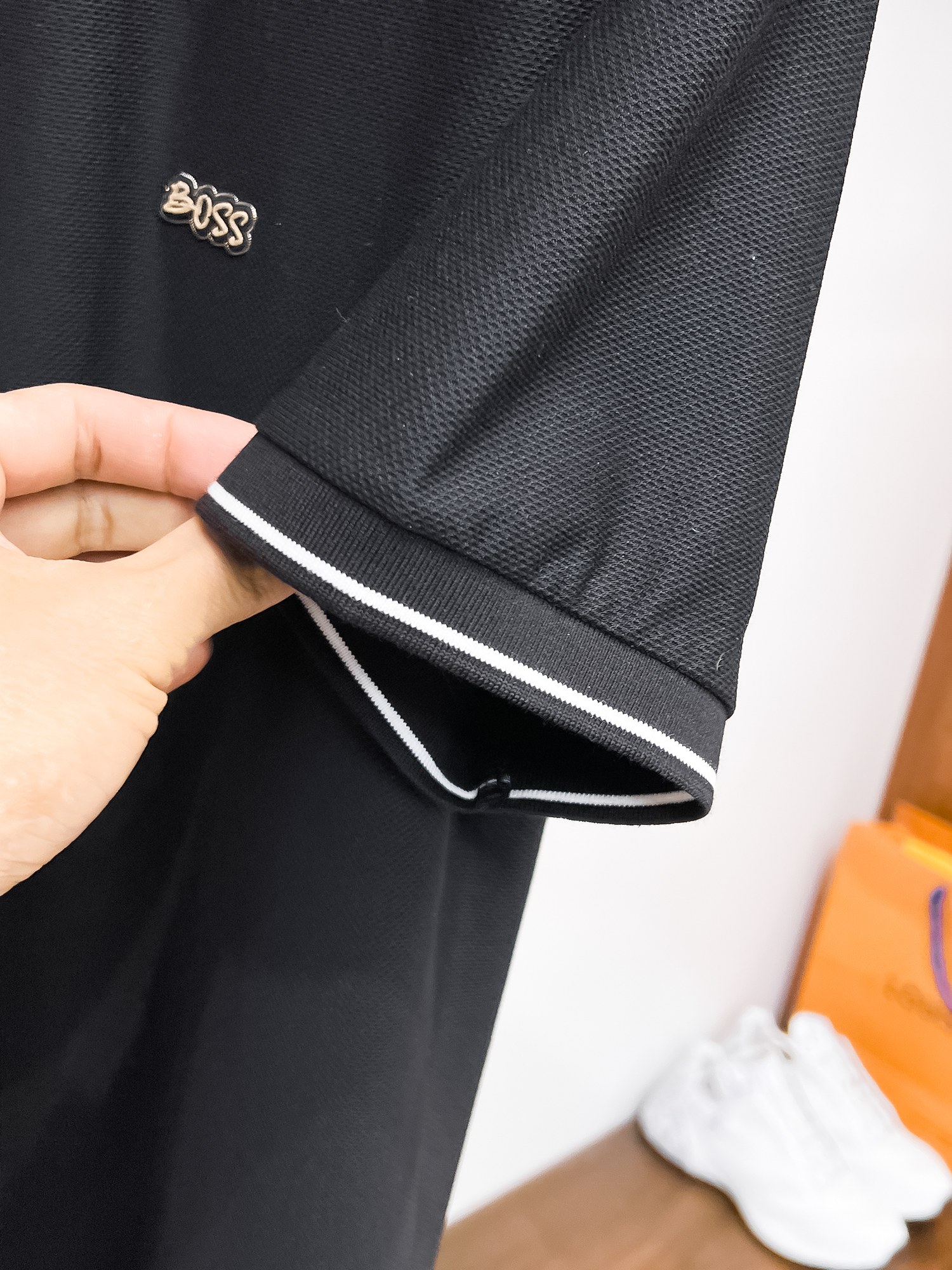 BOSS: A must-have item for high-end business white-collar workers! Seamless embossed ice silk casual business short-sleeved Polo, made of technological fabric, ice silk seamless, with an excellent body feel, smooth hand feel and great texture! It has good elasticity and no sense of restraint at all. The fabric comes with breathable mesh, which can absorb moisture and sweat, and dries quickly to keep it dry. The small lapel and front button design shows a tall and straight posture. It is not soft and slippery. The simple style is suitable for both business and casual wear. Highly recommended! High-elasticity ice silk, with a touch as smooth as jade silk, clean and neat, exuding an elegant and gentlemanly demeanor. High-end materials, with the focus on the fabric. Quality control is a must. The hand feel is extremely fine and smooth, and the fabric has a good luster and a good frame feel when worn, making it a mature and high-quality men's wear! Summer sweat dries instantly, a brand-new experience for business commuting and leisure M-4XL