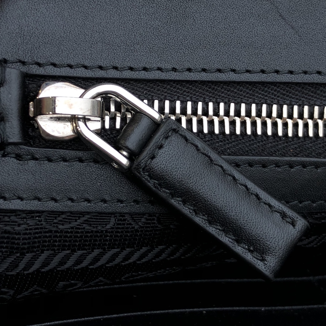 26.5cm black Prada men's clutch with letter grains ~
