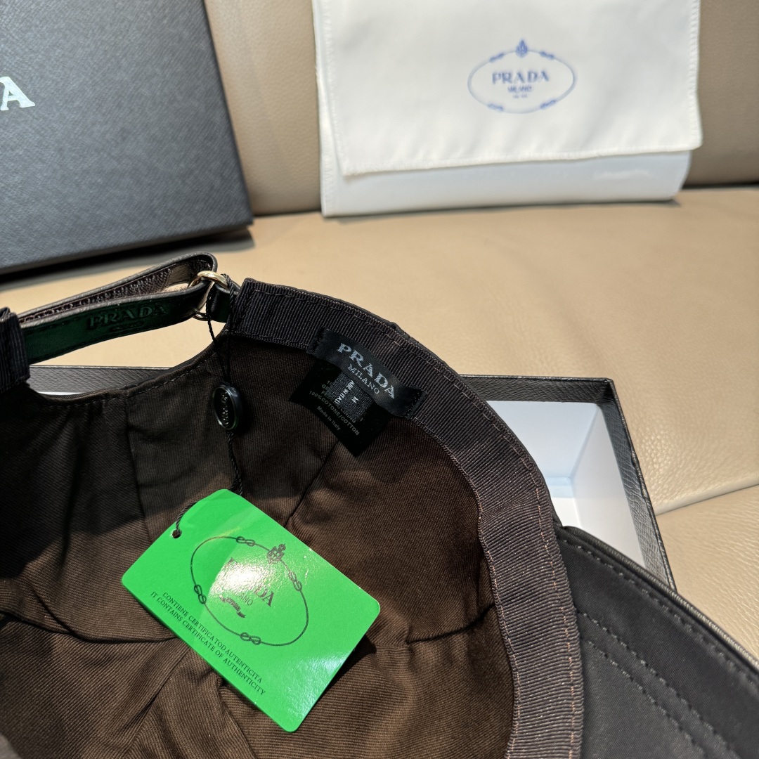 Paired with a box and cloth bag, Prada's new original single baseball cap with subtle PRADA patterns. 1:1 mold custom-made, original Oxford fabric + top-grain cowhide, perfect workmanship, superb quality! Pure cotton lining, base head circumference 56, patch adjustable.