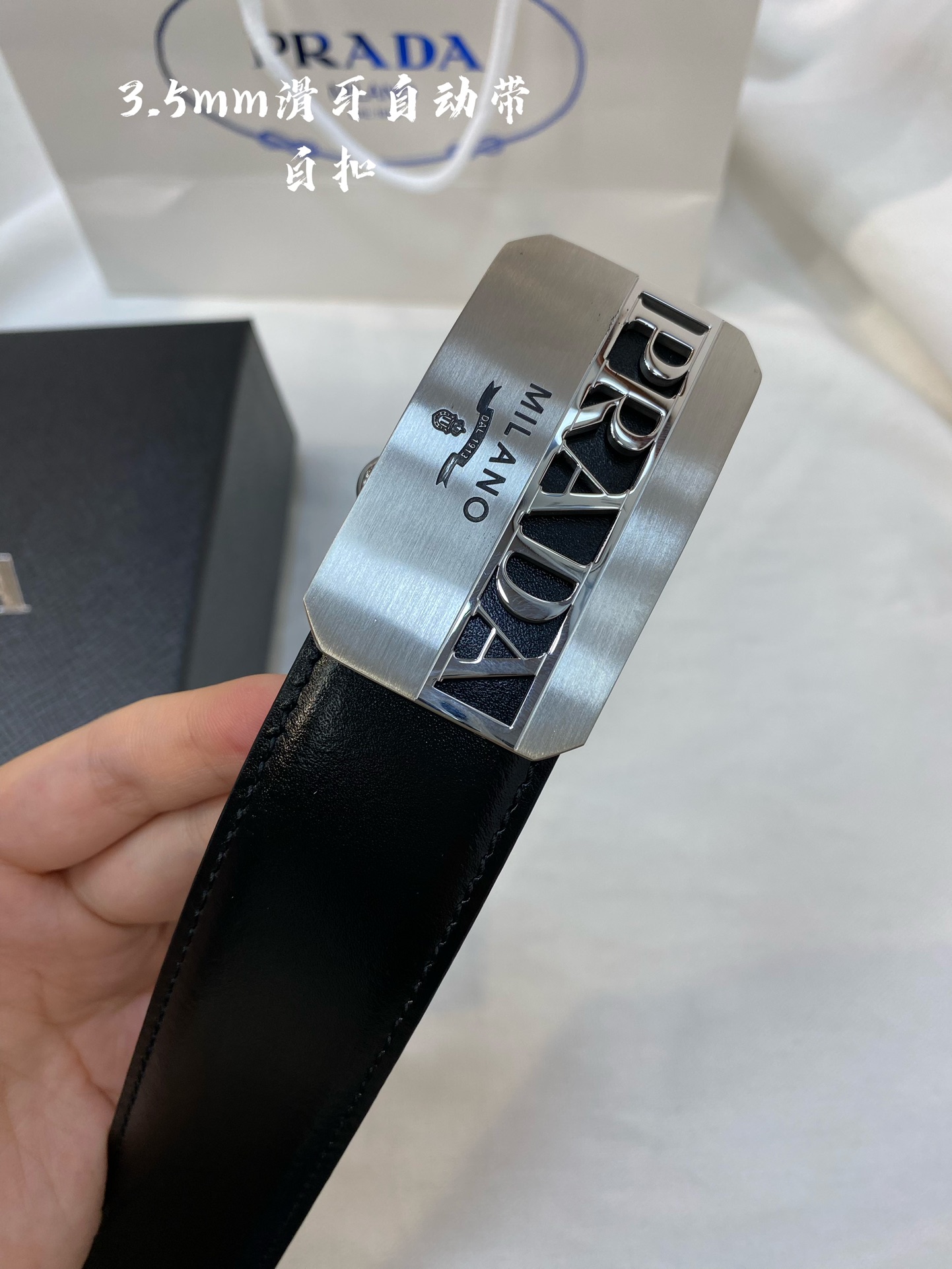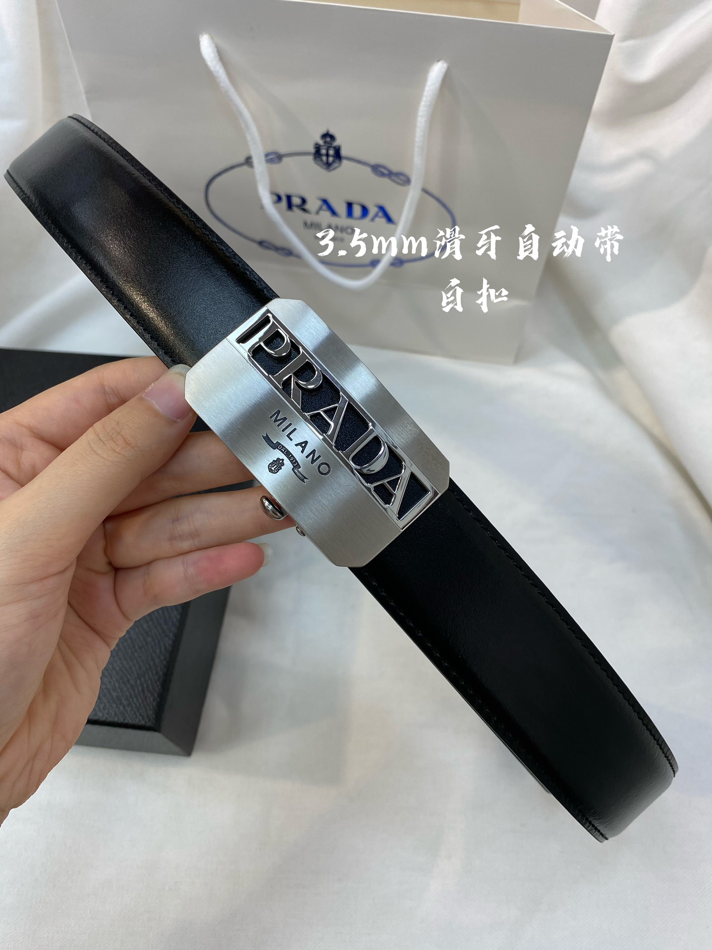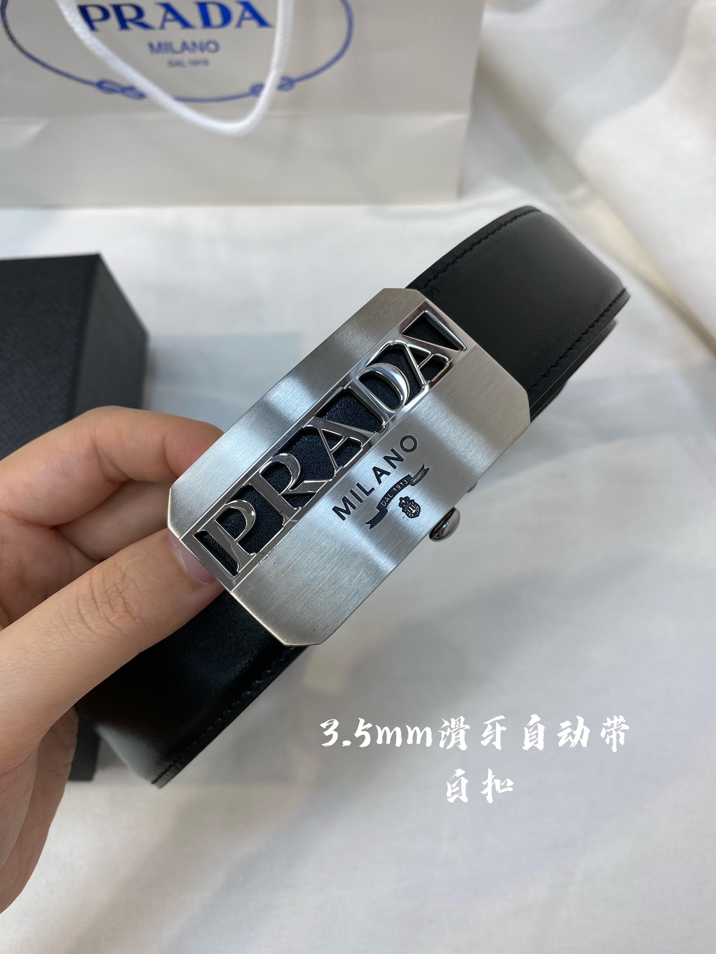 Prada Men's Automatic Belt - Belt width 34MM, exquisitely crafted with 316 high-quality steel buckles, soft to the touch