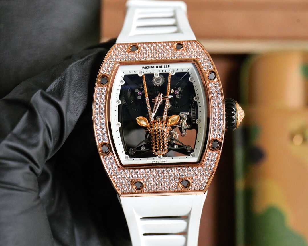 ?? The latest Goat in the Richard Mille Starry sky collection is studded with diamonds and equipped with an original imported mechanical movement, highlighting the sporty style of this watch. Through the anti-glare crystal, the suspended skeletonized movement successfully captures the hearts of watch enthusiasts. The skeletonized image creates a non-mainstream watch world!! !!