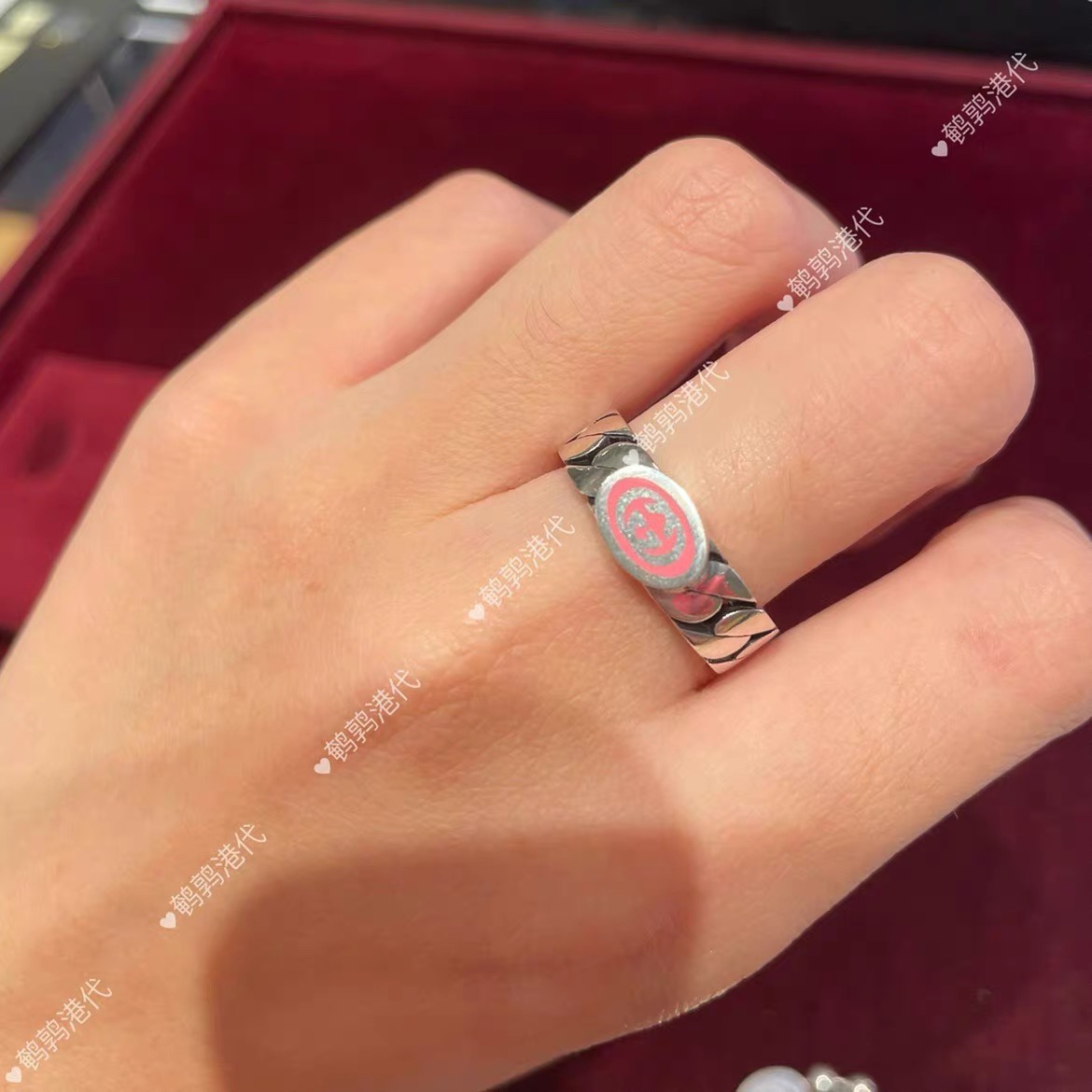 ??[Star style]GUCCI Interlocking Double G enamel rings for women and men size 6-11 rings