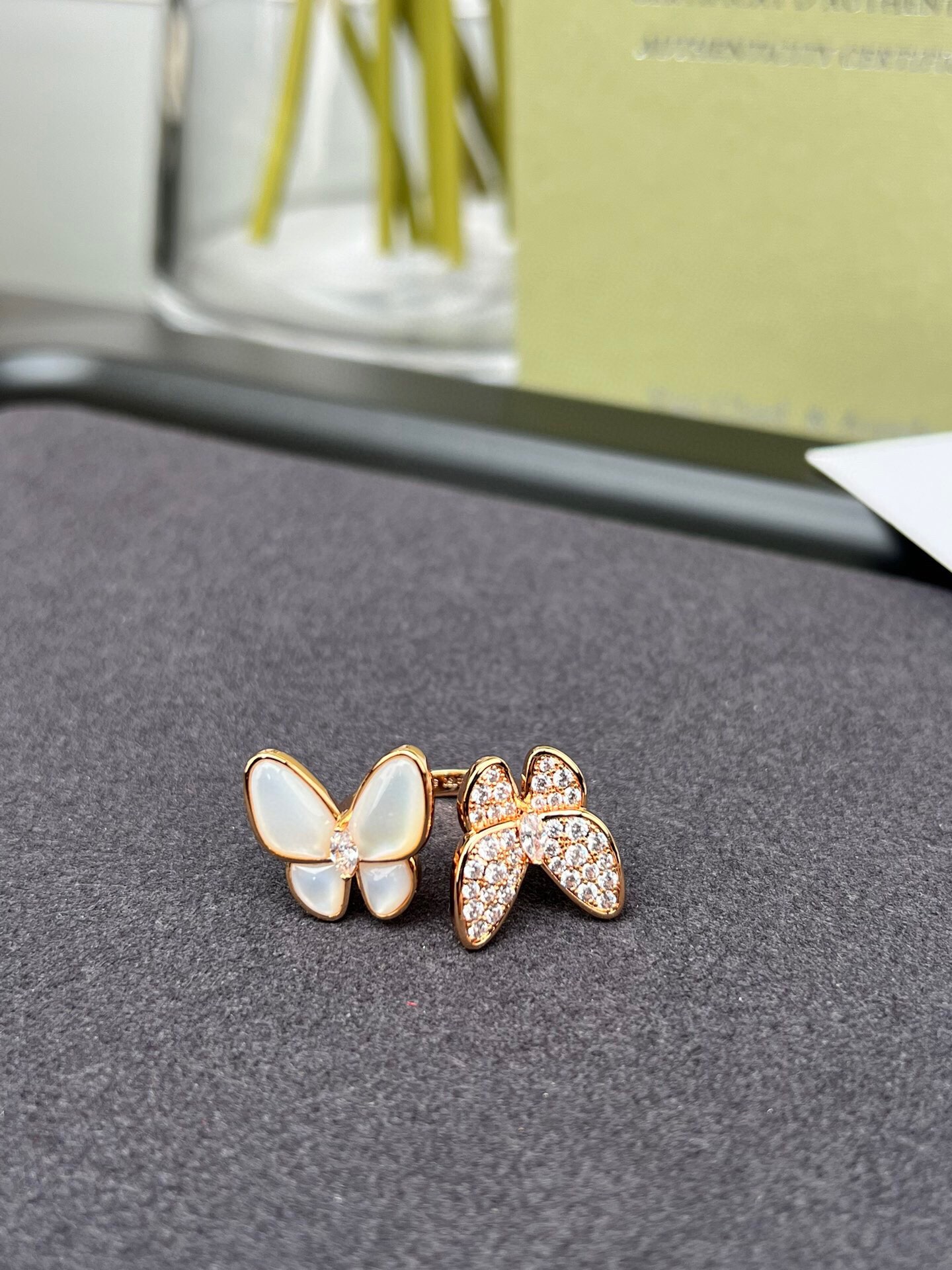Wholesale price The Fairy style double Butterfly white mother-of-pearl ring (No. 5678) Some colleagues only made one size, thinking that the opening can be adjusted. This is incorrect. The original ZP ring arm is very thick. If the size is adjusted forcefully, it will deform and completely lose the symmetrical butterfly flavor. Can ONLY SAY THIS IS IN IS TOO FAIRY ?? GODDESS SERIES ONE It embodies an elegant, intellectual and charming intuition The combination of full diamonds and white mother-of-pearl is unique and distinctive ?? Fluttering butterflies | The ethereal charm of the white mother-of-pearl, combined with the luxurious presence of numerous diamonds, makes it look large in size but not vulgar at all. Instead, it exudes a delicate and lively charm, making one look very delicate! It looks even more fairy-like when paired with fluffy clothes. Rings Ring