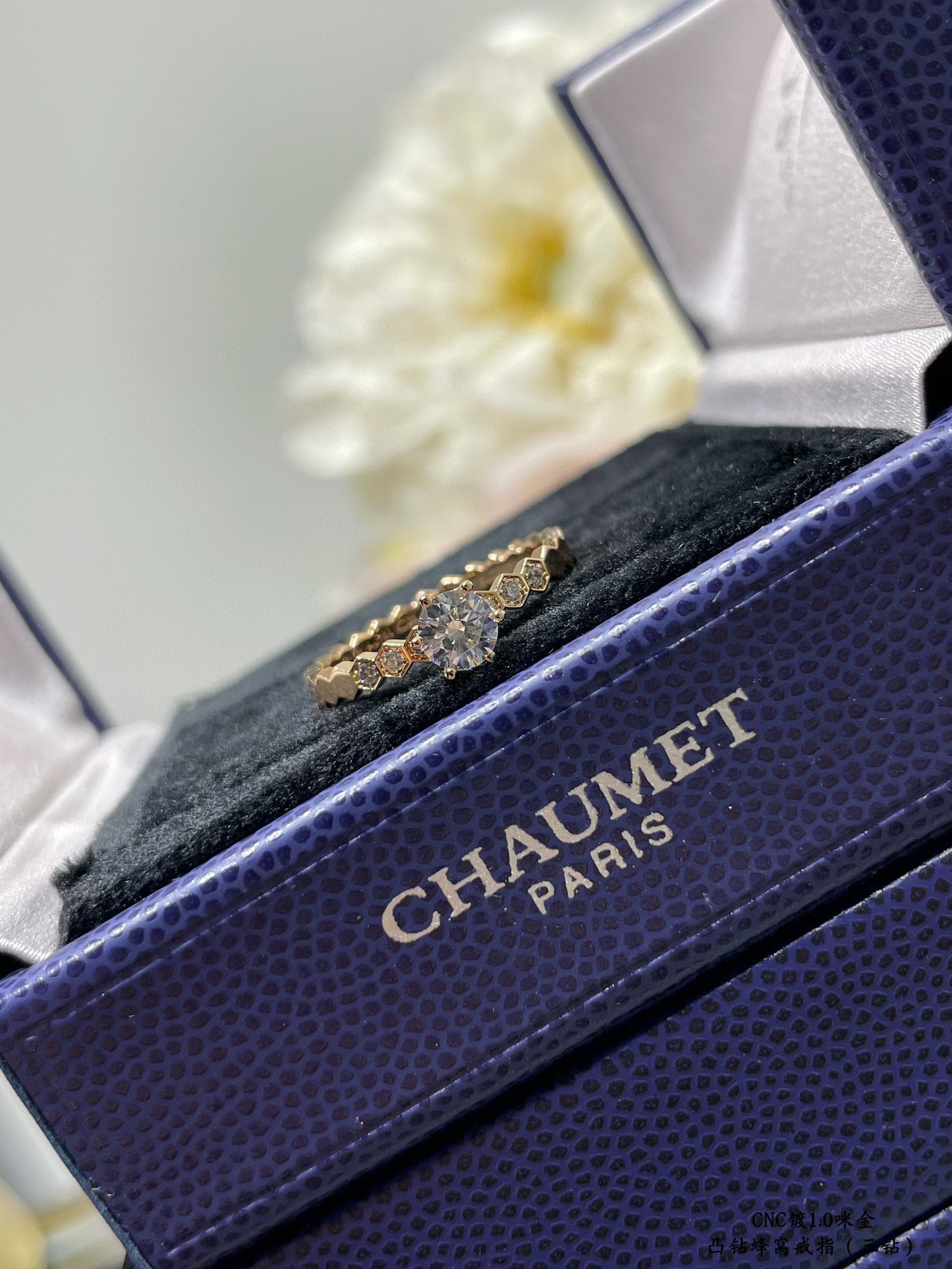 V Gold plated with mica gold ZP plate size 8680220 code: 5678. (Three diamonds) Shangmei CNC convex diamond honeycomb Ring ?? (Stack for a more beautiful effect) Luxury ?? HIGH-END custom ? continue to use honeycomb Bee My Love replicate the love of the honeycomb in the heart, carry love on the body, build love nest together ?? Super shining Rings Ring