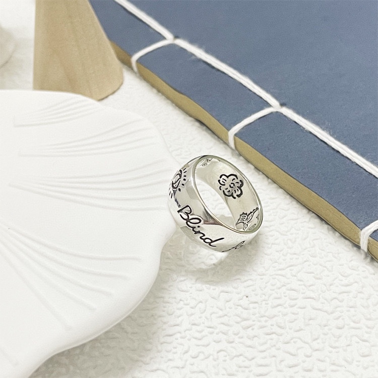 Ancient family retro flower-and-bird Rings for couples, wide and narrow versions of letter G rings