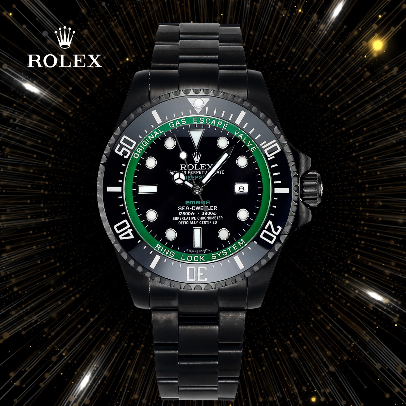 44mm diameter!! The Rolex SEA Submariner series overseas custom Edition - "Red Magic/Blue/Black" has made a stunning debut. Equipped with Seagull 2836/3135 movement! In response to the strong demands of many watch enthusiasts. BLAKEN boldly launched - an all-black Rolex with special significance - "Red Magic" Adhering to the solid, stable and durable foundation of BLAKEN Ghost King, it adopts PVD vacuum negative ion electroplating technology and is coated with a hard black outer layer. This not only makes it more wear-resistant but also ensures long-term stability. The red/blue/black inner shadow and the second hand have the effect of adding the finishing touch, endowing it with a prominent and unique aspect. The inspiration comes from the renowned overseas modification agency - BLAKEN BLAKEN is committed to continuing Rolex's timeless classics and turning "good" into "classic".