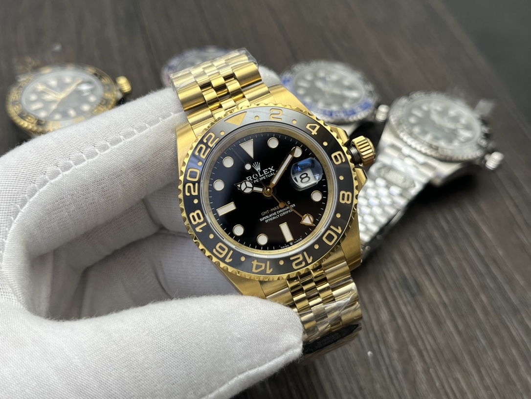 After years of accumulation, the Rolex Greenwich ll (with the cal3285 all-in-one) upgraded 12670 watch has made a stunning debut! Details: 1 ? Movement 3285 is a one-piece movement with a blue hairspring, the same as the original. The date function is adjusted by adjusting the fast jump of the hour hand. The GMT dual time zone hands are on the second layer above the bottom hour hand, in the order from bottom to top: hour - dual time zone hands - minutes - seconds. 2 ? pointer; The upgraded electroplated platinum can be seen from any Angle with its luster. It adopts a special needle tip process to ensure consistency with the original. The luminous powder is filled with imported Swiss blue-green luminous powder to perfectly restore the luminous effect! 3 ? dial; The original mold, three-dimensional printing, electroplating, platinum center axis, sunken calendar, font size and color are exactly the same as the original, including the polishing of the four corners of the bars and the 12-character crater polishing, all of which are highly consistent! 4 ? rim opening; The soul of this watch is also where our factory has spent a great deal of time and effort. Every firing is a progress. Our factory's bezel is formed in one piece with high-precision ceramic bezels. The color difference must be minimized. The deep blue and black bezel, red and blue bezel, black bezel, and genuine ceramic are all filled with white gold. Its color is currently the closest to the original! 5 ? calendar; The new Rolex calendar adopts a new hook 4. Factory C has drawn on it to avoid many incorrect versions in the market. The font printing on the calendar is very clear and three-dimensional. Even when magnified ten times, it remains clear and three-dimensional without any jagged teeth! 6 ? case and strap; The 904L steel casting blank is selected and formed through repeated manual grinding. 904L steel has the advantages of low density, strong corrosion resistance, scratch resistance and wear resistance. The overall impression exudes a sense of understated luxury! CLEAN Factory2024, a masterpiece of craftsmanship, interprets classics and achieves excellence. Welcome all watch enthusiasts to appreciate!