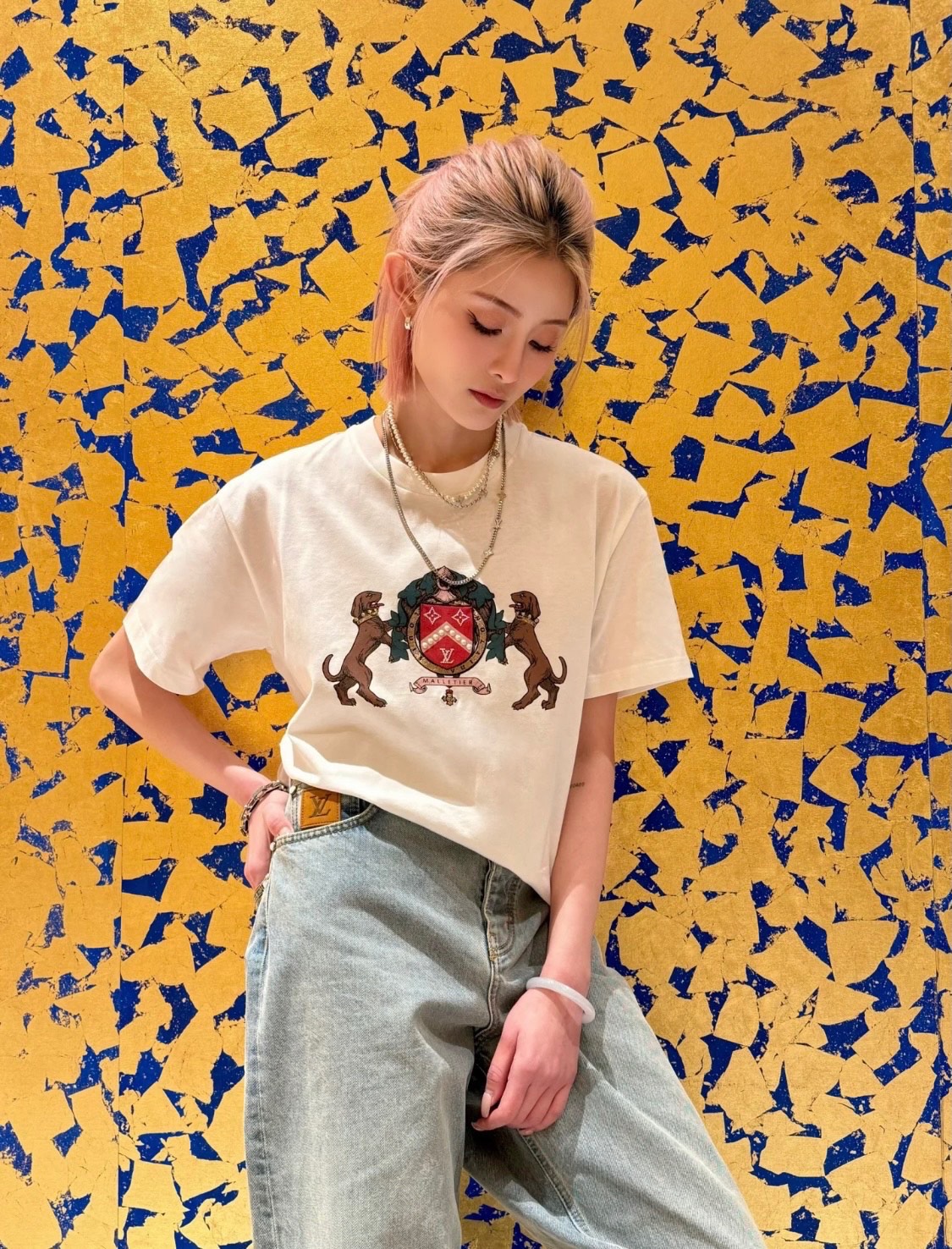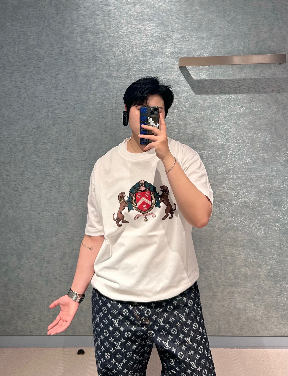 #Louis Vuitton/ Louis Vuitton 25ss Double Dog logo print short-sleeved top wearing effect