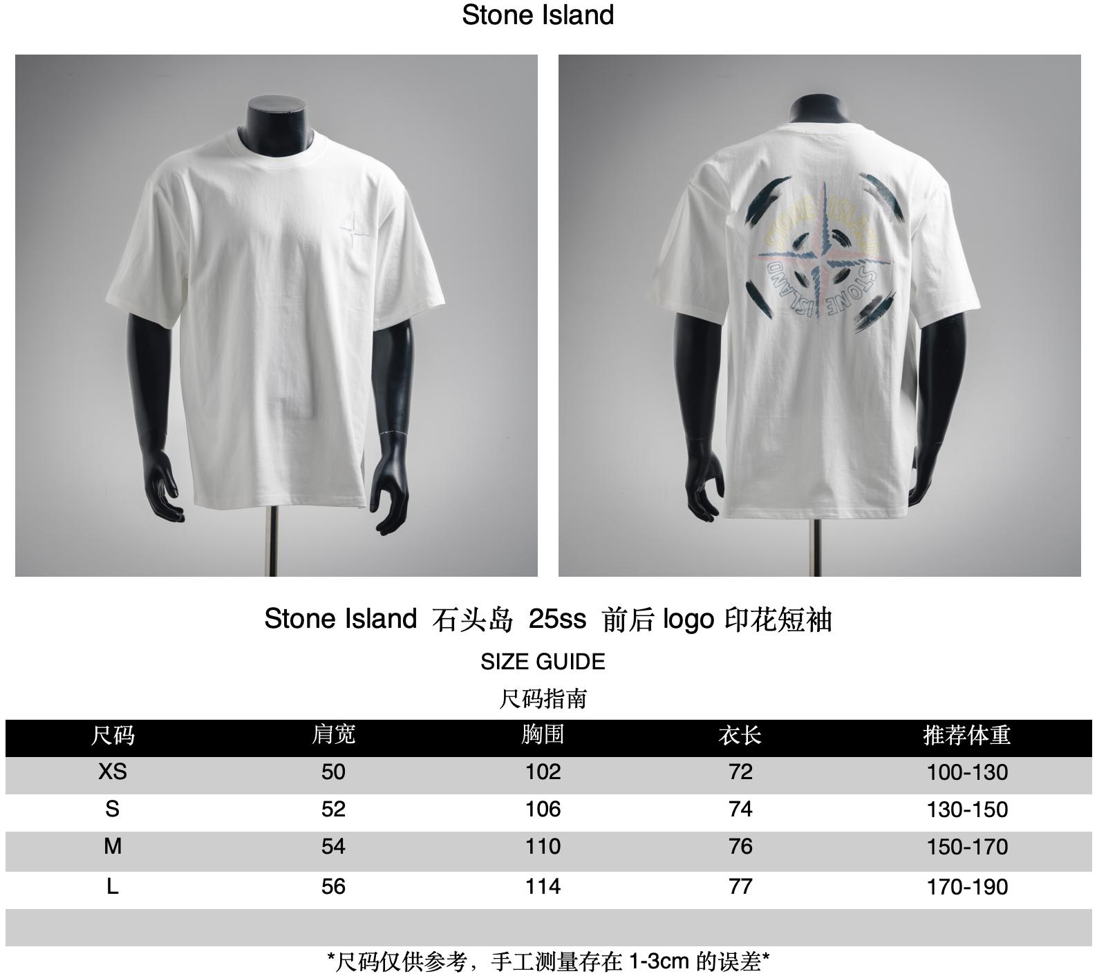 Recommended short-sleeved sizes for Stone Island 25ss with front and back logo prints