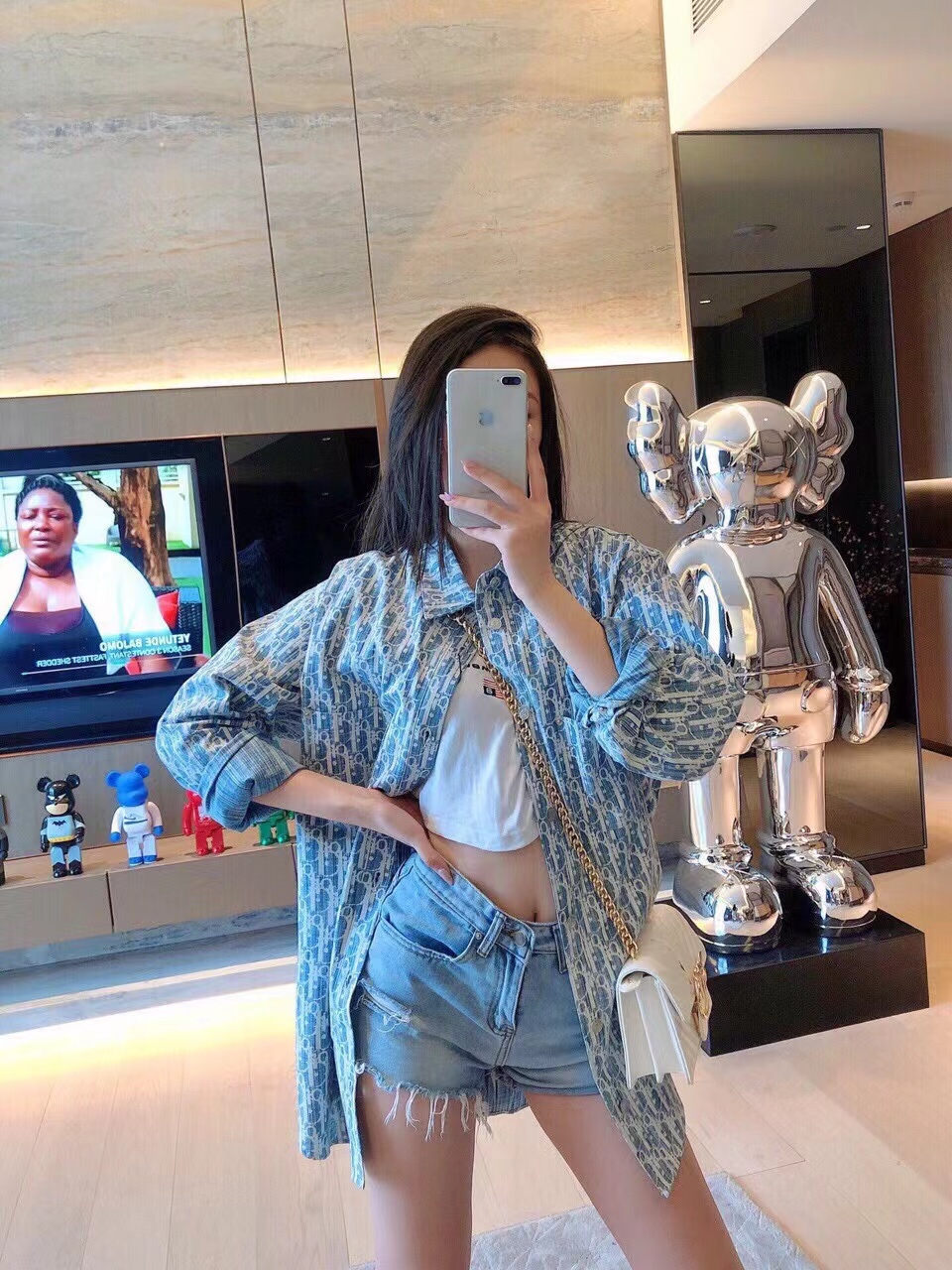 Collection of Dior 22ss classic full-print print denim shirt jacket wearing pictures
