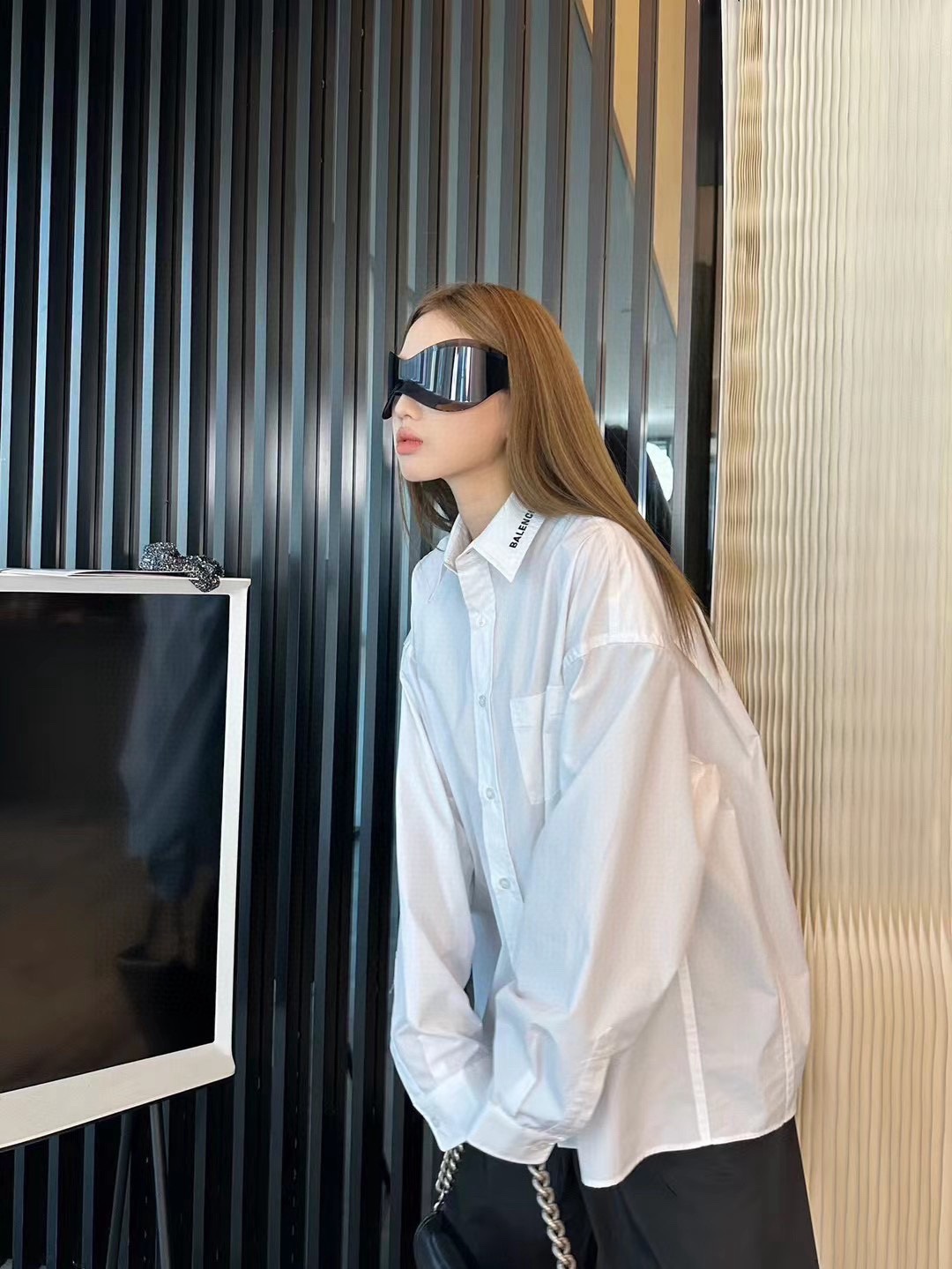 # Upper body material image Balenciaga/ Balenciaga BLCG 24FW long-sleeved shirt with letter embroidery at the neckline