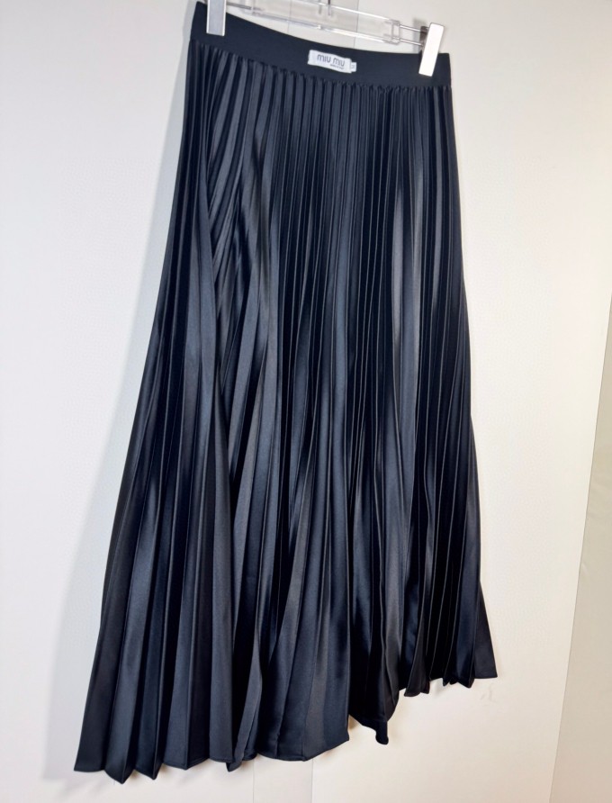 ????MIU* 24 Fall new pleated skirt/skirt design Satin pleated high waist crisp drape shiny pleated long skirt Popping Street skirt Gentle style medium long pleated skirt. Size: SMLXL